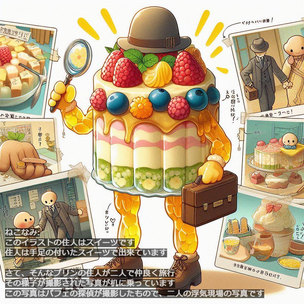 プリンには手足を付けて、旅行での写真みたいにしてー