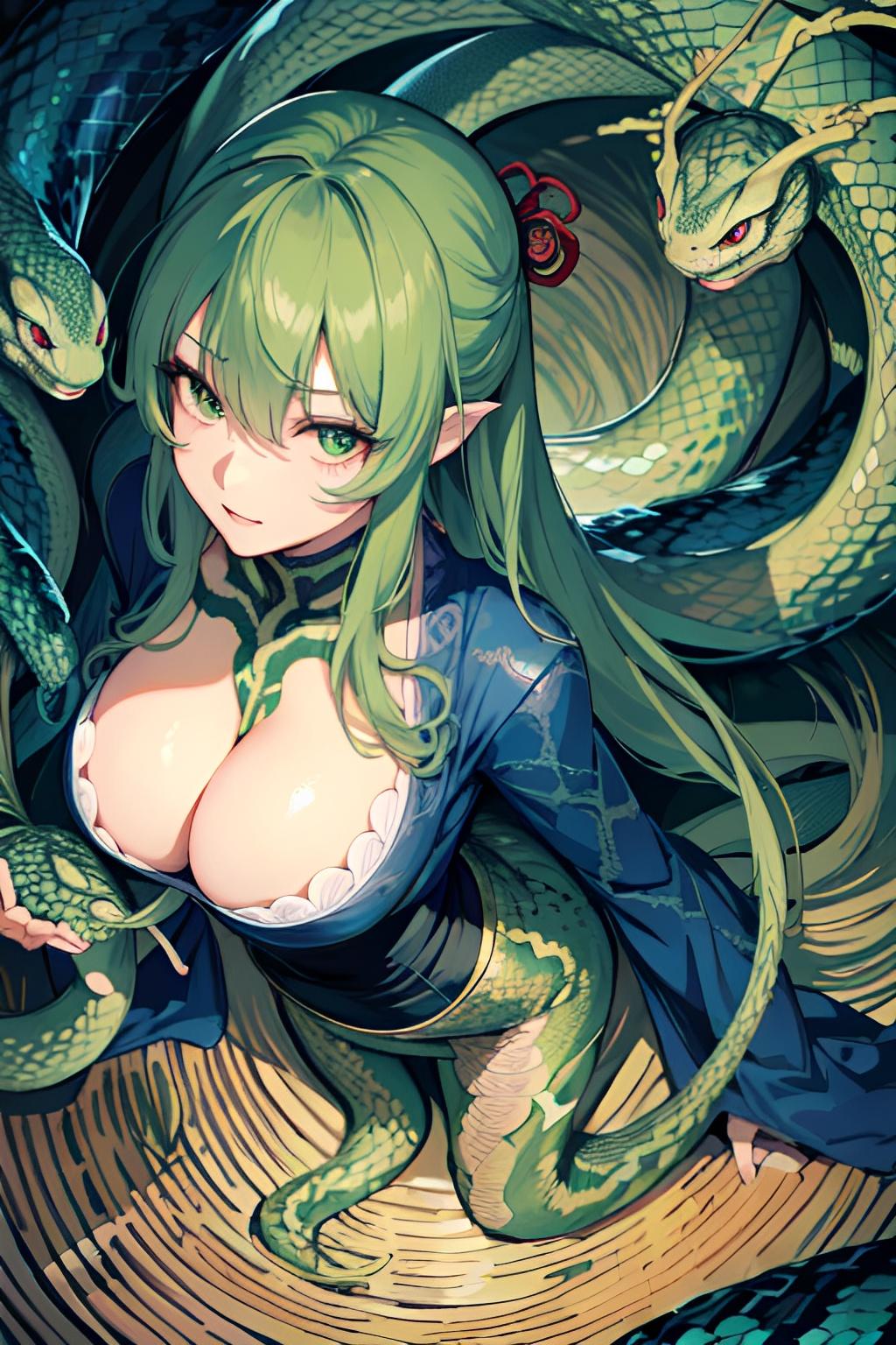 完璧な人間の上半身と蛇の尾ではないが、妖怪の雰囲気は出ています。