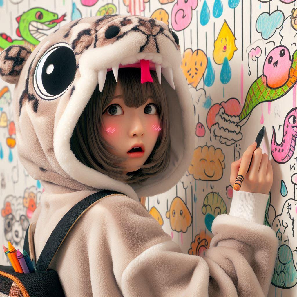 今日は壁紙を剥がしたのでそこに自由に描いていいぞ