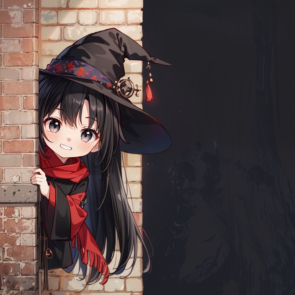 壁から顔を出して様子を伺う魔女デフォルメ版
