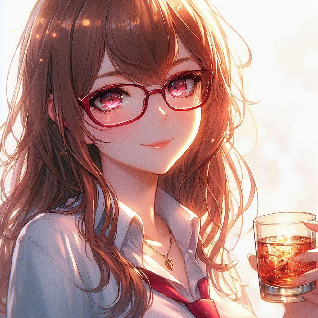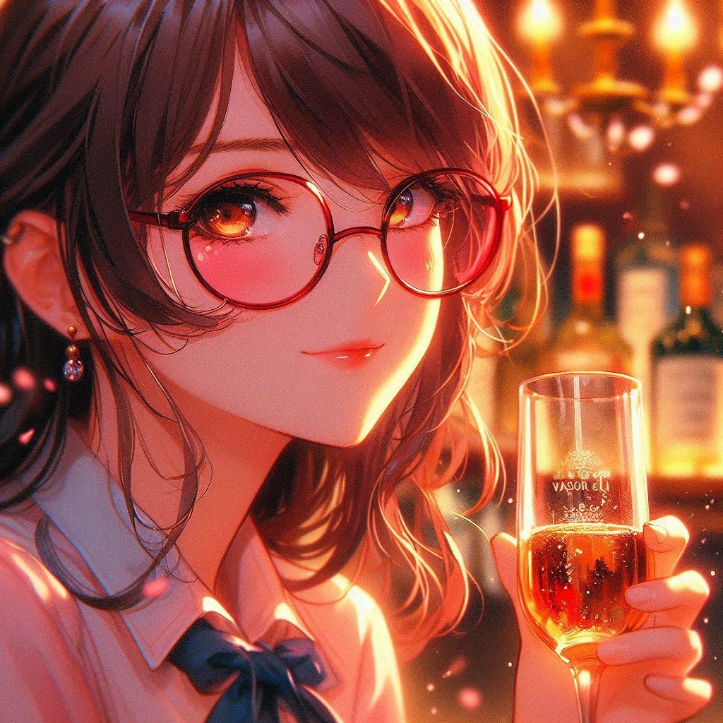 お礼イラストは、学園長さんをお借りしてバーでお酒を楽しんでいる様子を描かせてもらいましたm(__)m