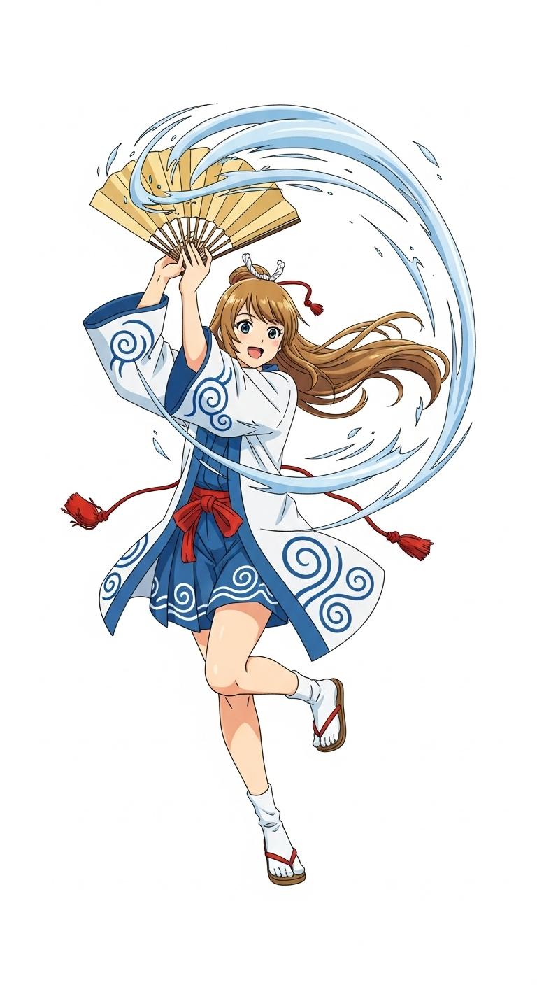 風神をモチーフにしたキャラで、ハッピを着て風を送るうちわを持っています