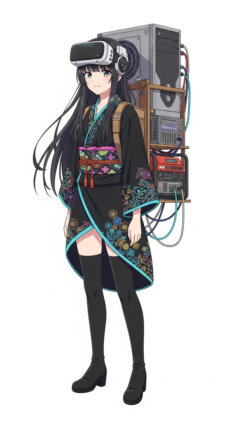 どこでもVRゲームをしたいと思ってデスクトップパソコンを持ち歩いている女の子です