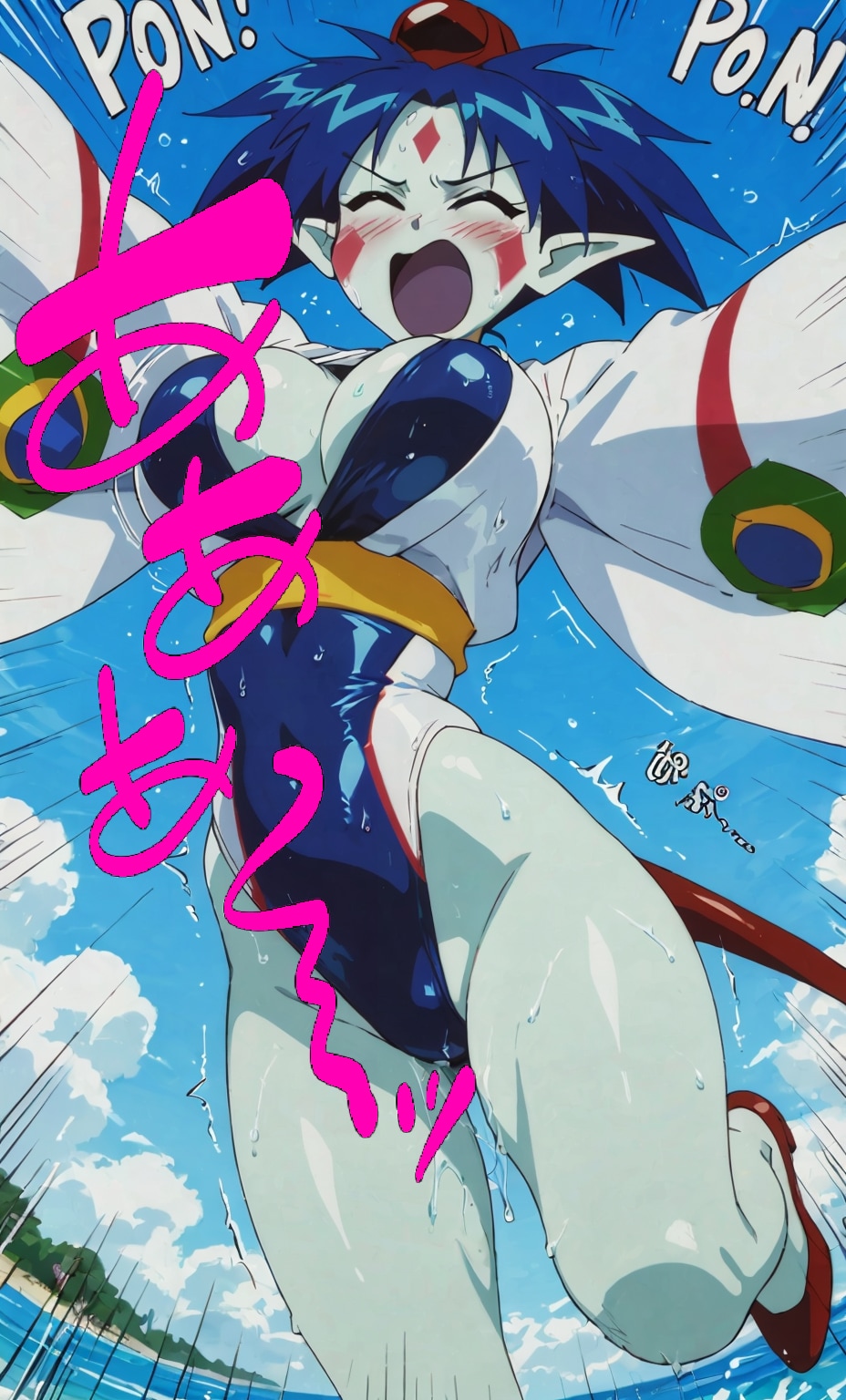 ポン子ちゃん:「どんな水着の色に変えても防げない💦!」「無理💦無理💦むりいいいぃ~っ😖💦」「いくら超強い(自称)ポン子ちゃんでもこんなの耐えられない💦・・あああっぁぁああああぁーーっ💦💦!!」