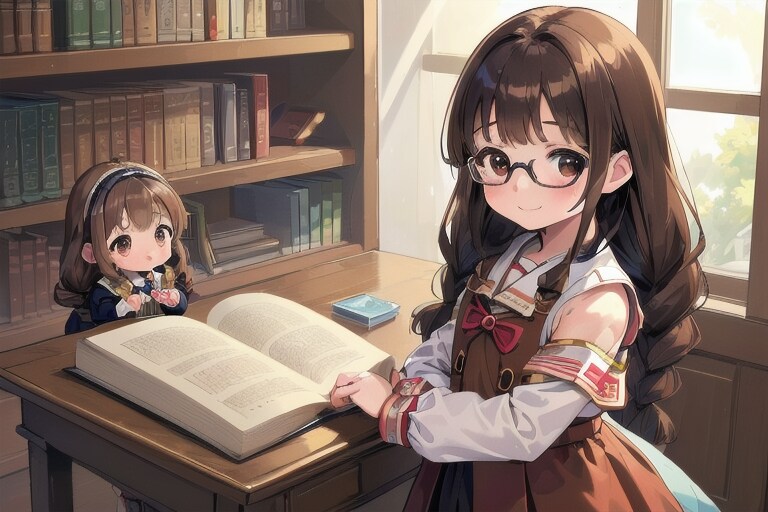 特に「1girl」とか指定してない時に人なのか何なのか、時々変な物体が一緒に生成されてくるときがありますが今回なぜか妙に可愛い物体が生成されてきたので「書庫の妖精さん」というキャラクターにしてみました。余裕があったらきちんとした妖精さんも作って見たいかも。