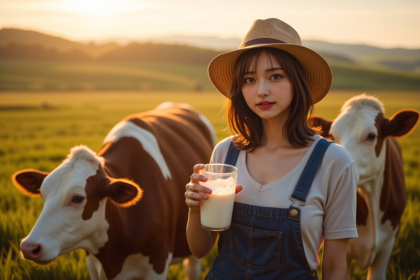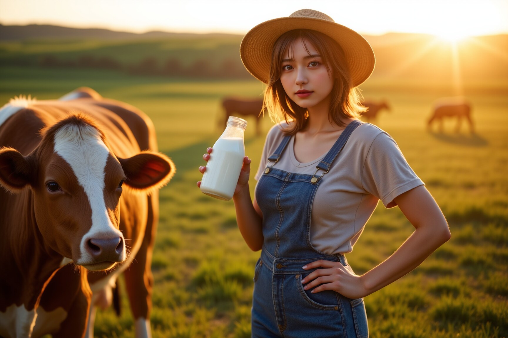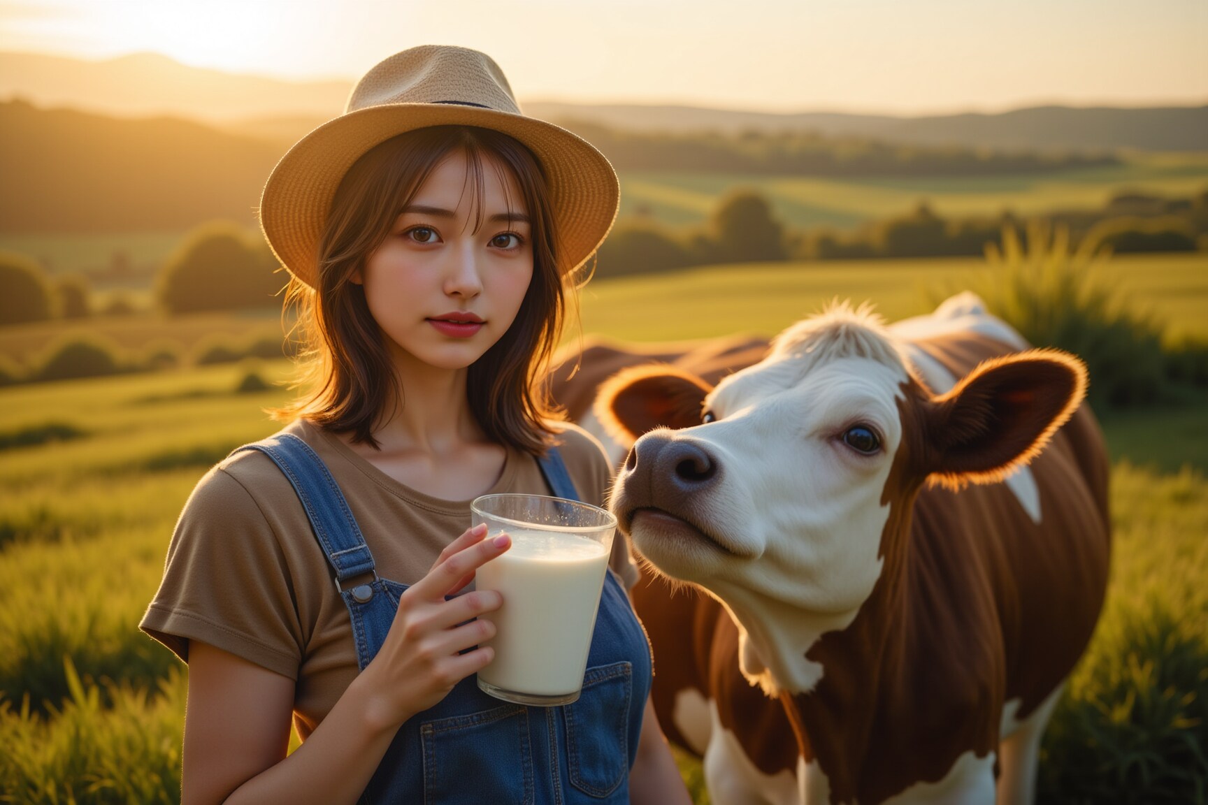 牛をCOW酪農家の女性…すいません、生成しやすそうなダジャレに逃げました。