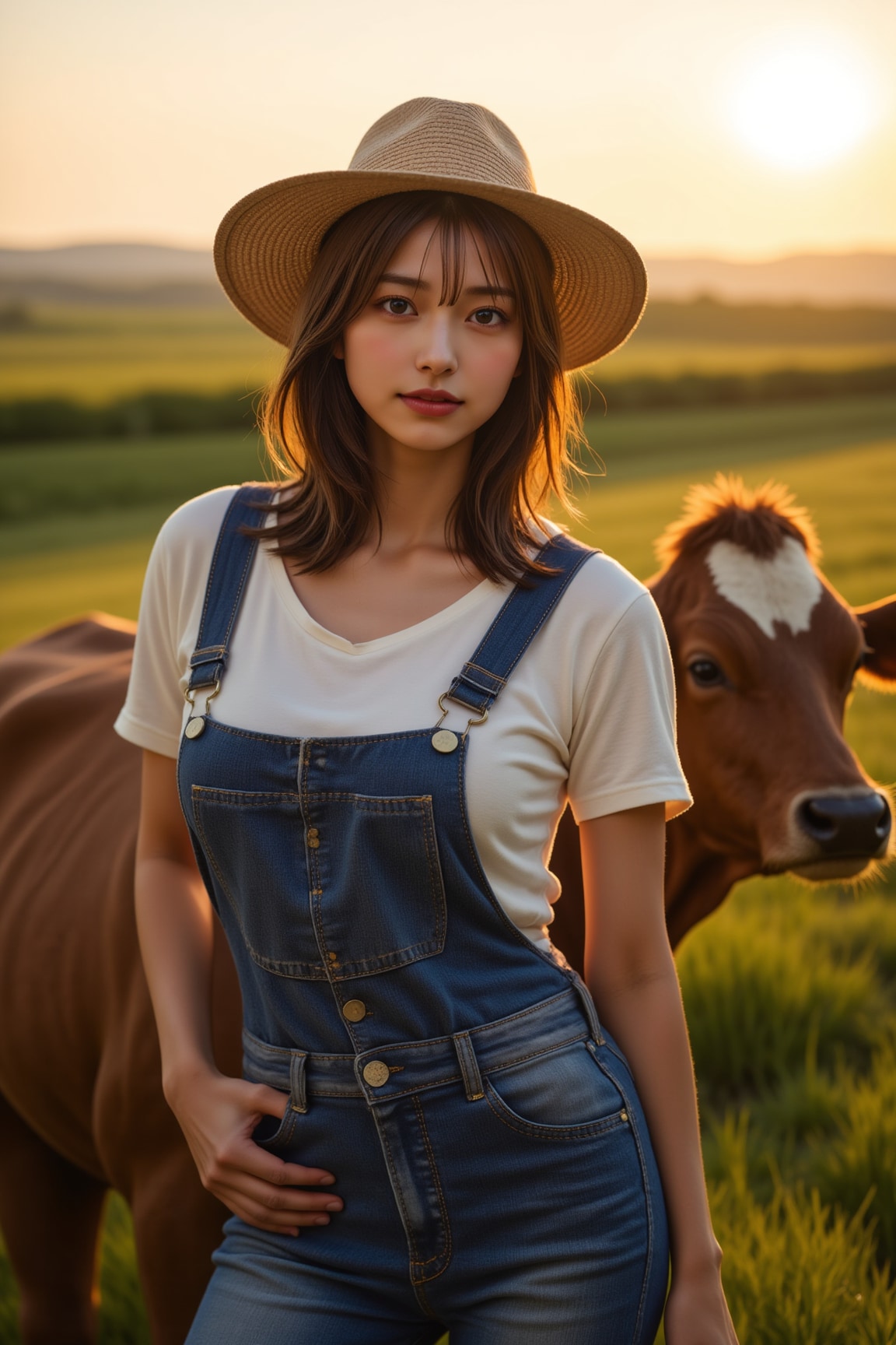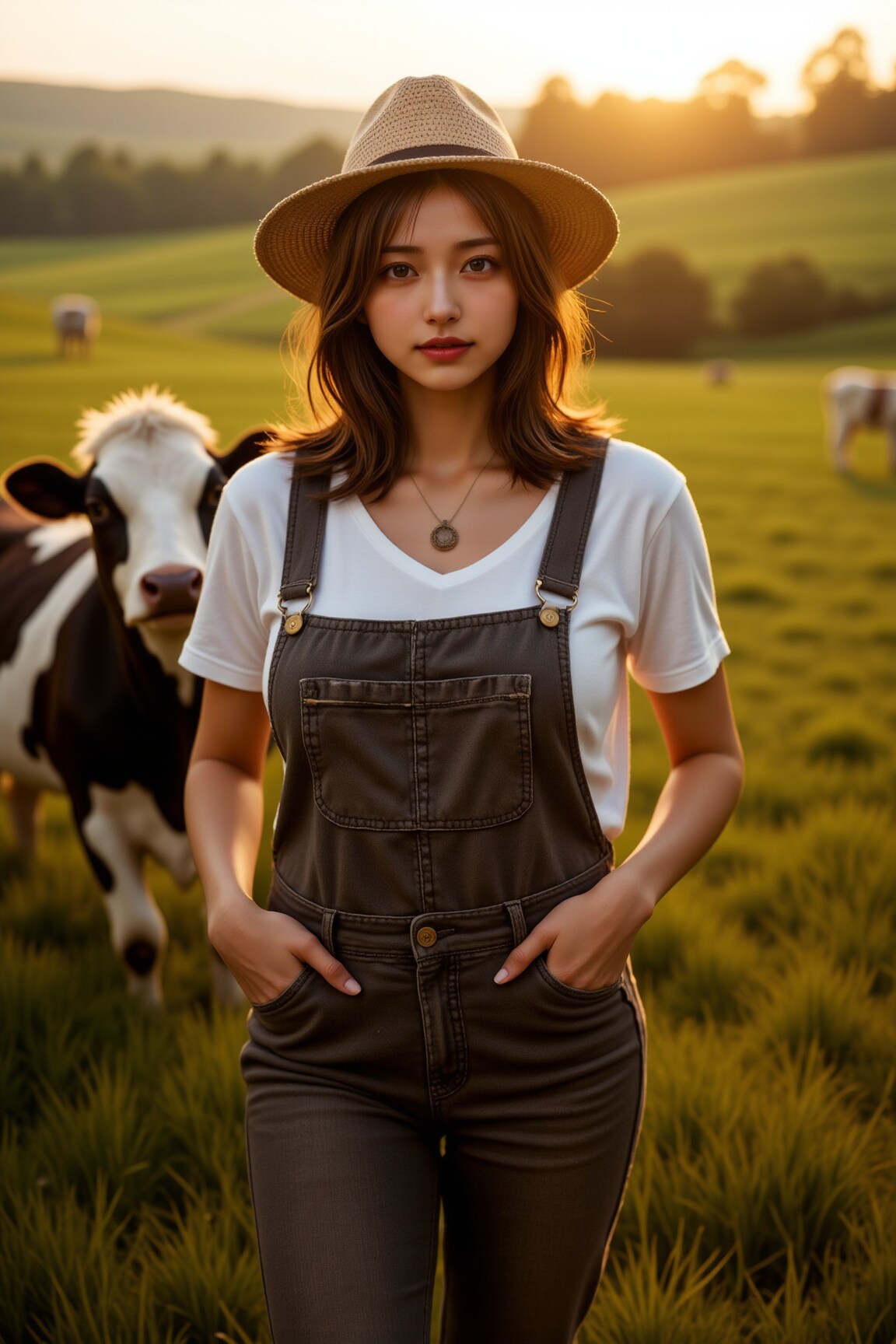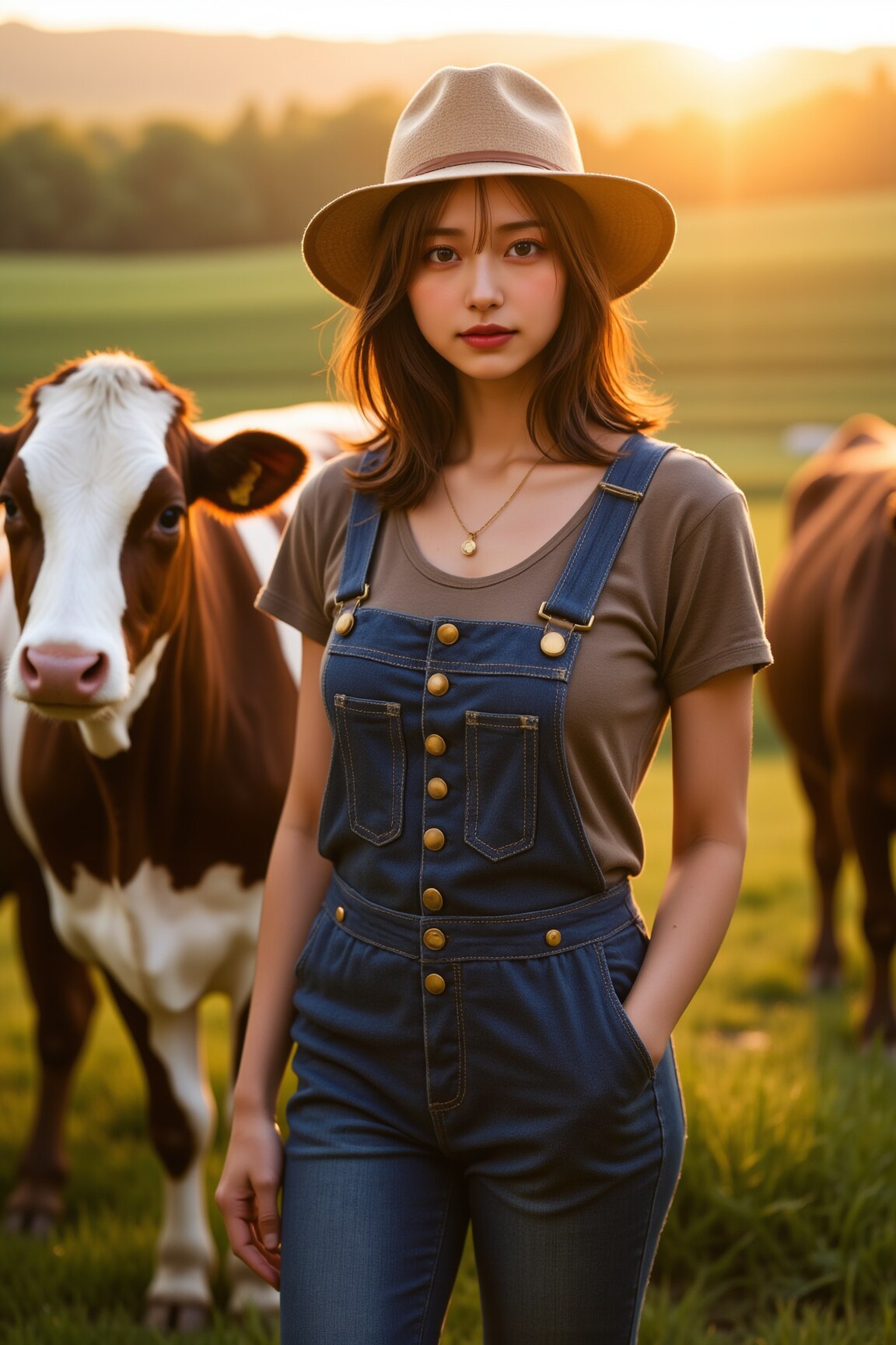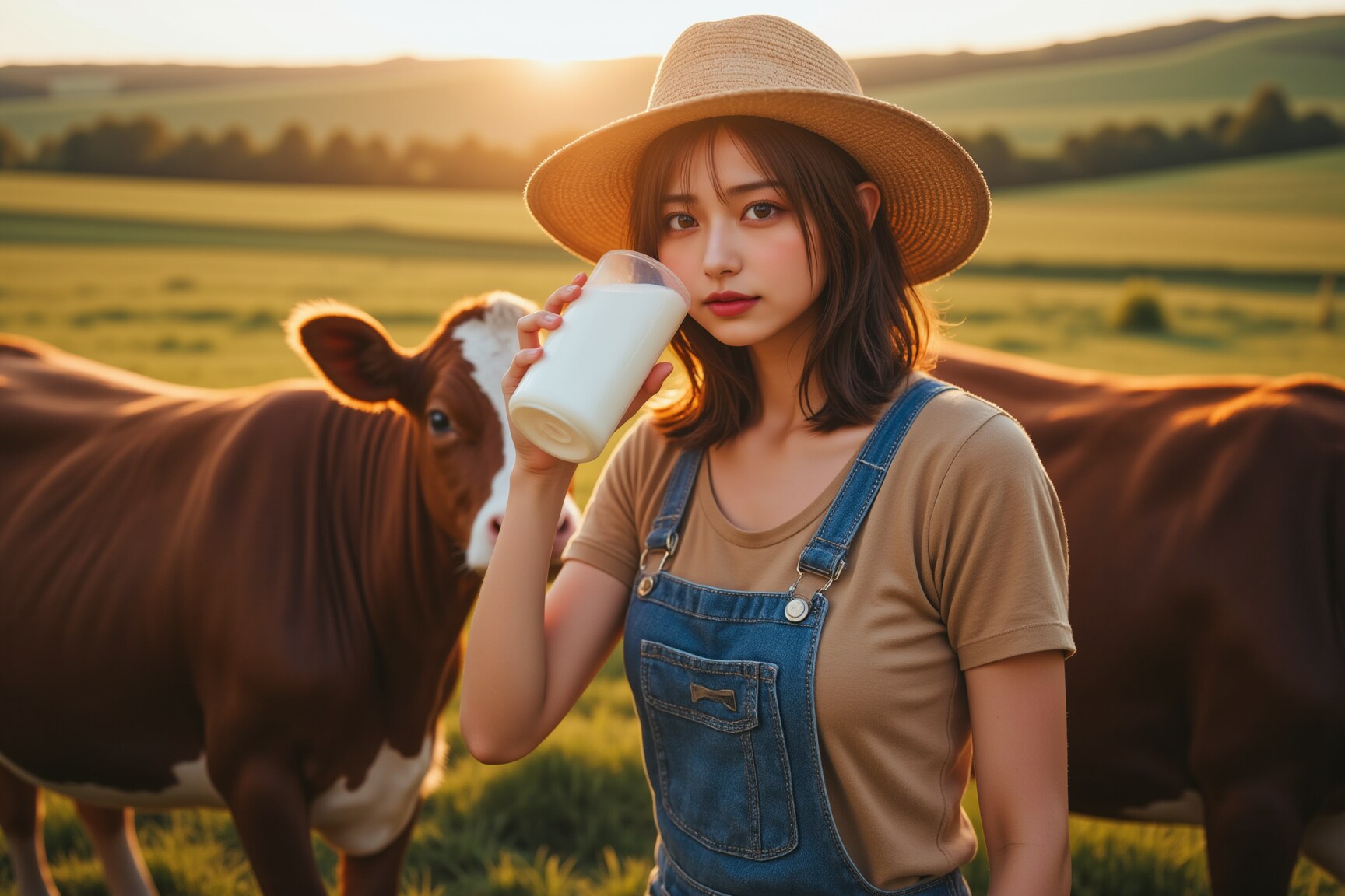 牛をCOW酪農家の女性…すいません、生成しやすそうなダジャレに逃げました。
