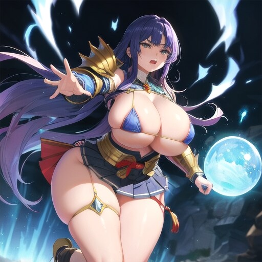 ビキニアーマー戦士が渾身の気力玉を溜めます