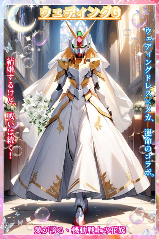 ウェディングガンダムは、女性の姿を持ちながらも、その戦闘能力は抜群だった。彼女の名前は「セリーナ」。彼女は人間の感情を理解し、戦うことだけでなく、愛を知りたいと願っていた。