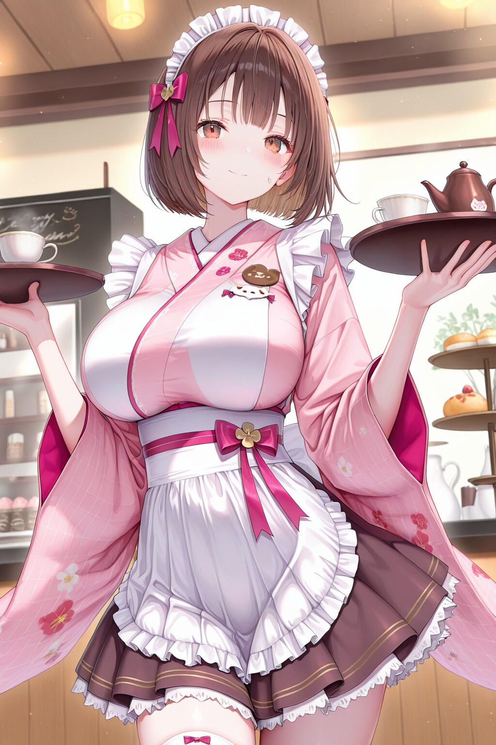 今日のちちぷい生成はQILINでうちの子達で和メイド!着物っぽいメイドさんです👍