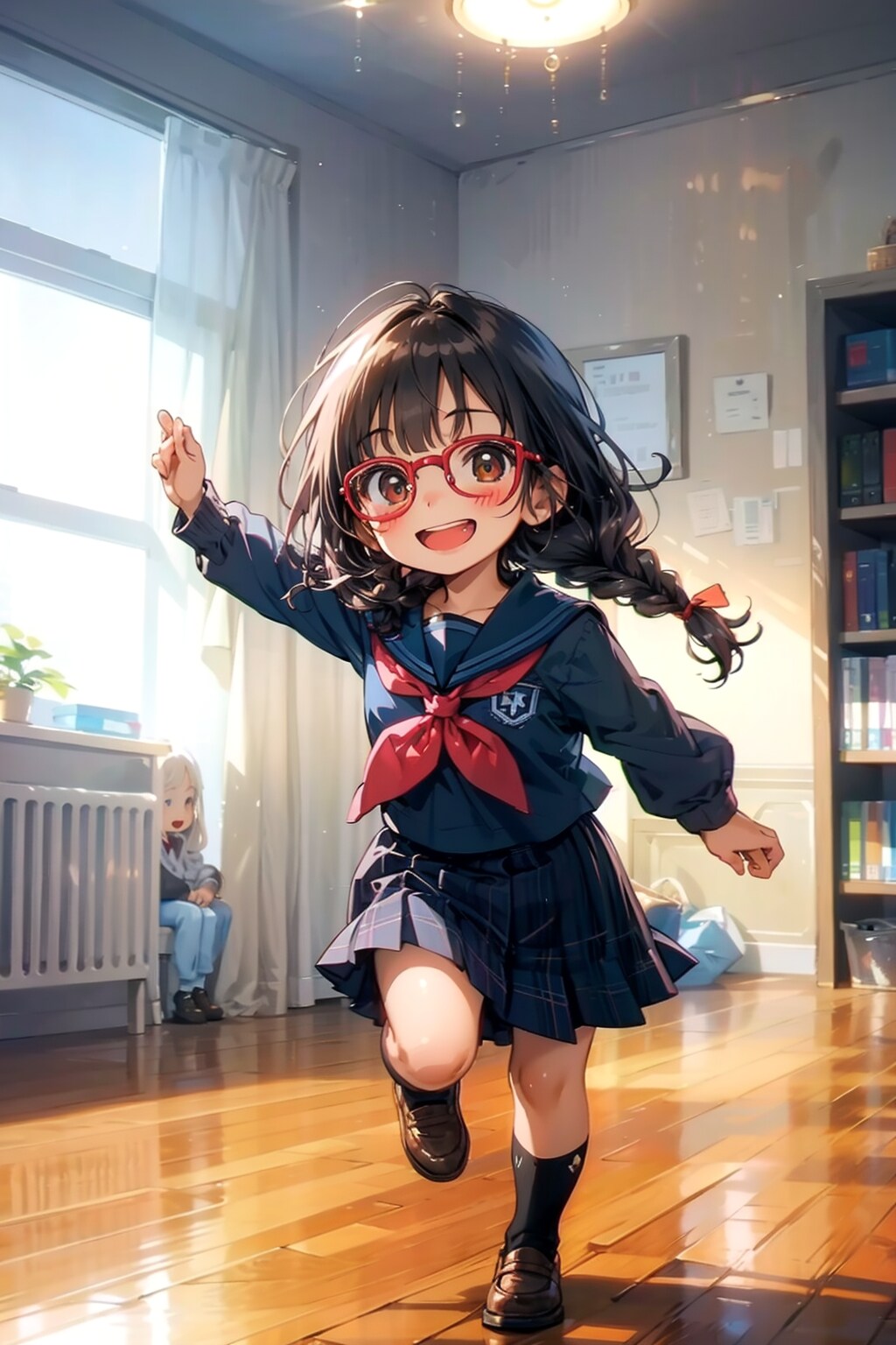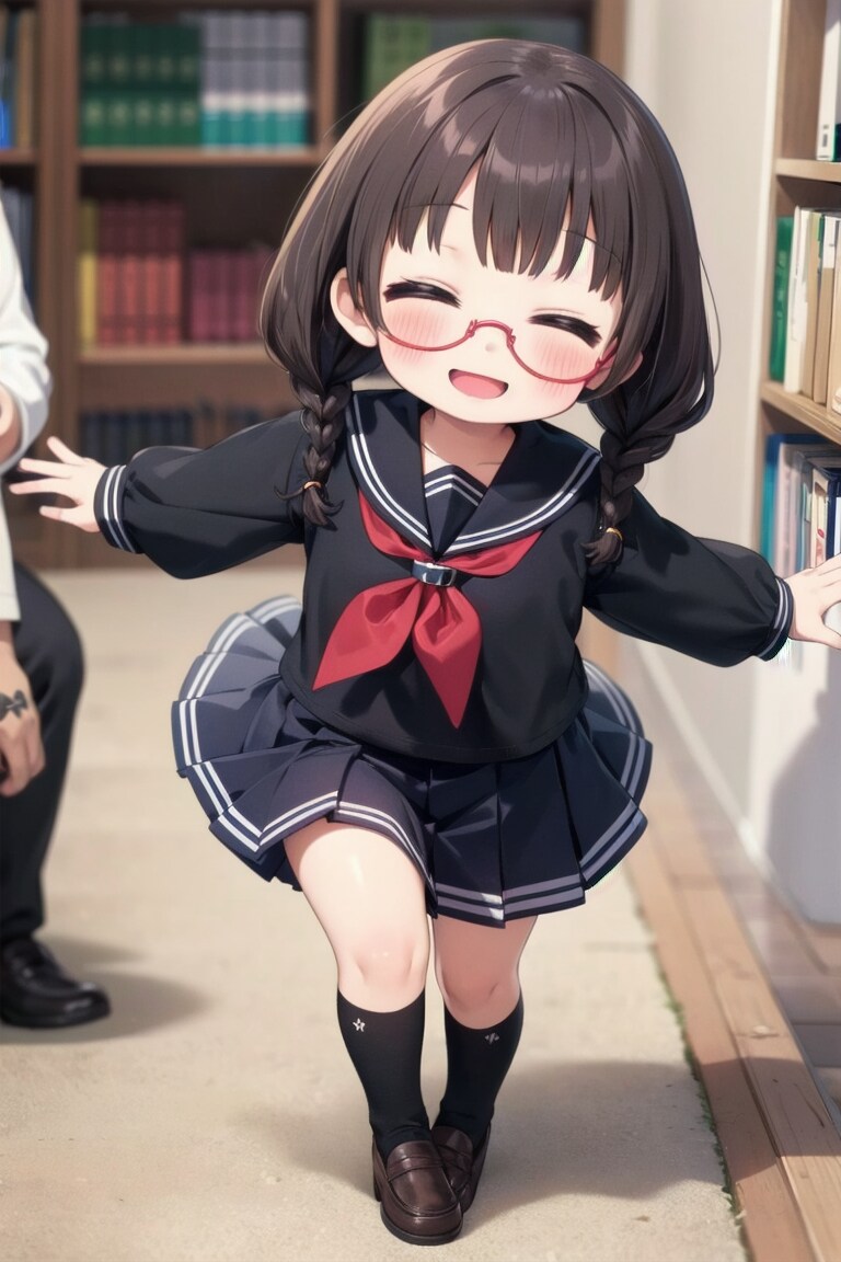 ばかりの頃の委員長ちゃんの様子です。とにかく嬉しそうにはしゃいでる今よりもさらに幼い委員長ちゃんを作ってみました。V4Bがメイン、TOPAZでは屋外か室内でも図書館っぽくない感じなのでワクワクしながら図書館に向かってる、向かおうとしてるものと思っていただけると良いかと思います。外部での生成の方が当時の委員長ちゃんイメージに近い外見なので合わせて投稿しました。