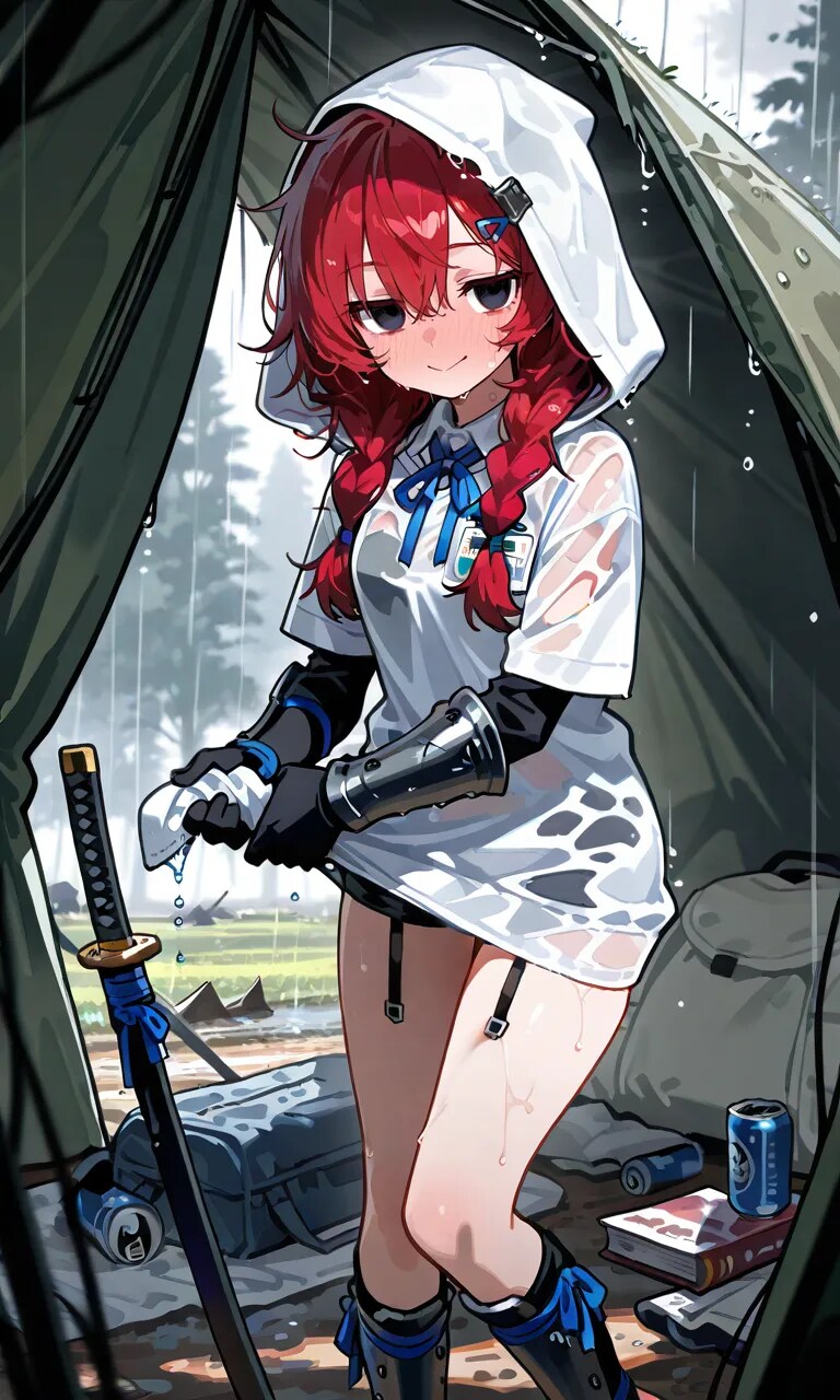 突然の豪雨に襲われる人斬りちゃん