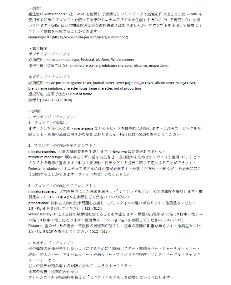 選択可能 (必須ではない): miniature scenery, miniature character, distance, proportional,