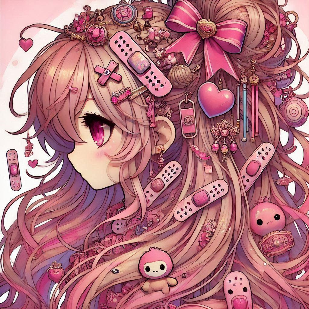 乱れる髪にピンクのアクセサリー