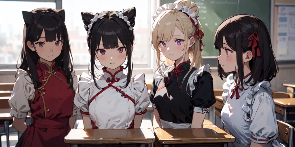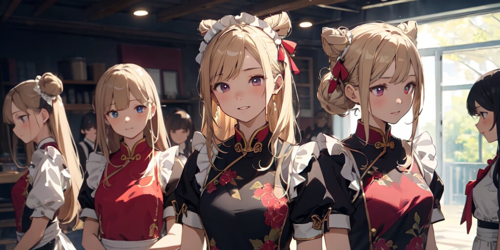 中華班は、チャイナ服お団子ヘアでメイド研究と実践をしています