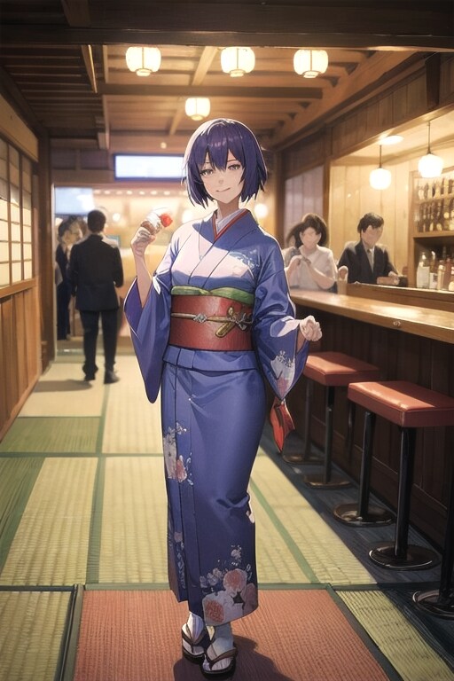 Large crowd, lively, を追加、bar, をJapanese bar, に変更