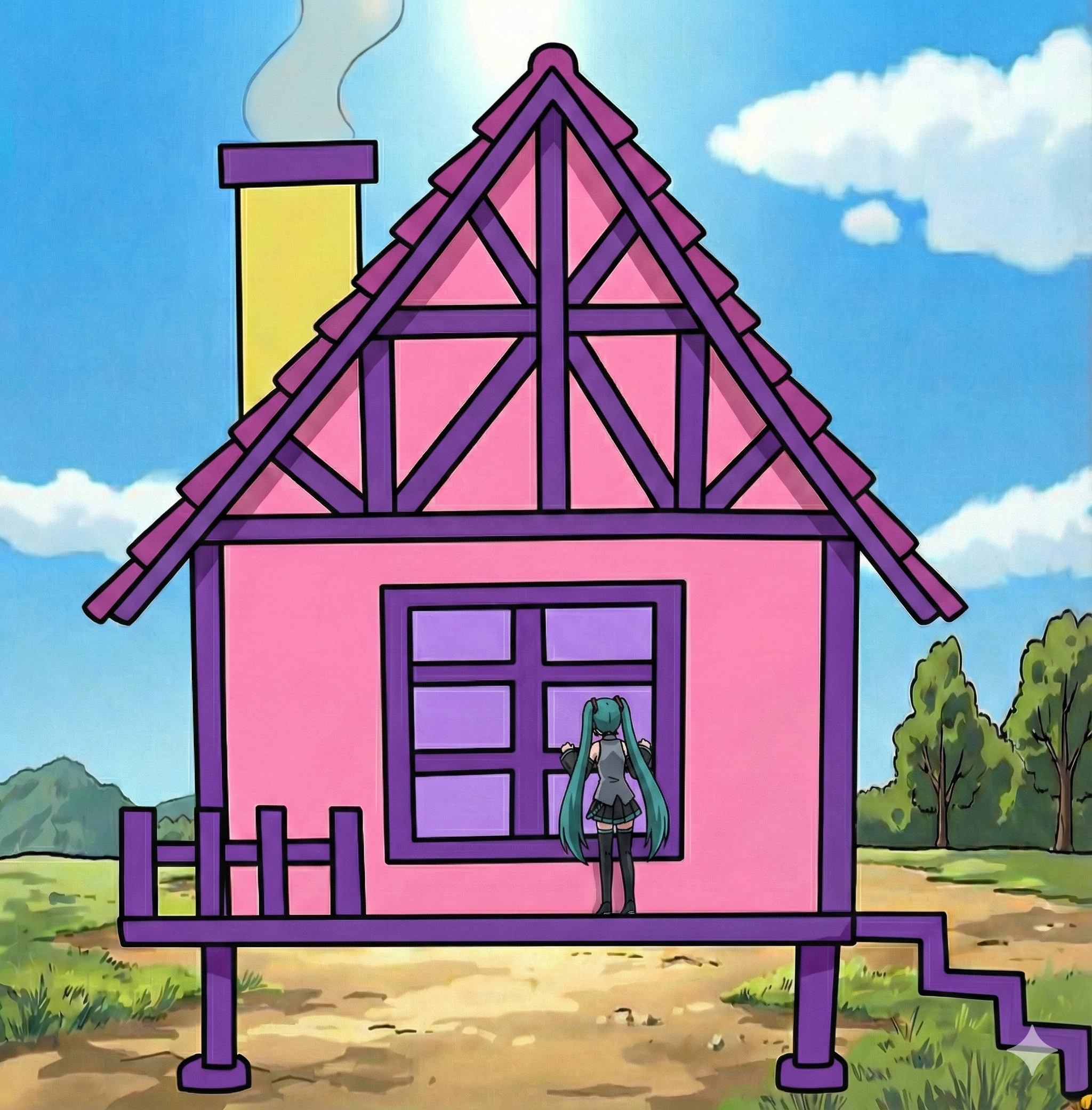 どこかの家に興味津々のミクさん( ̄∇ ̄)