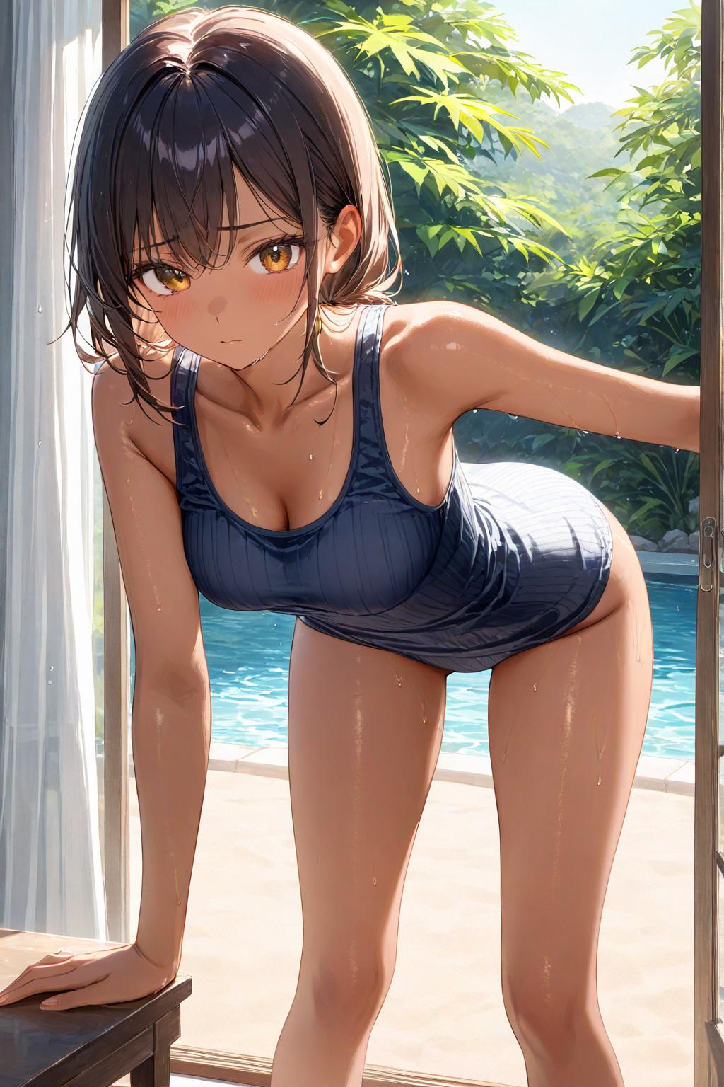 汗だく褐色日焼け少女