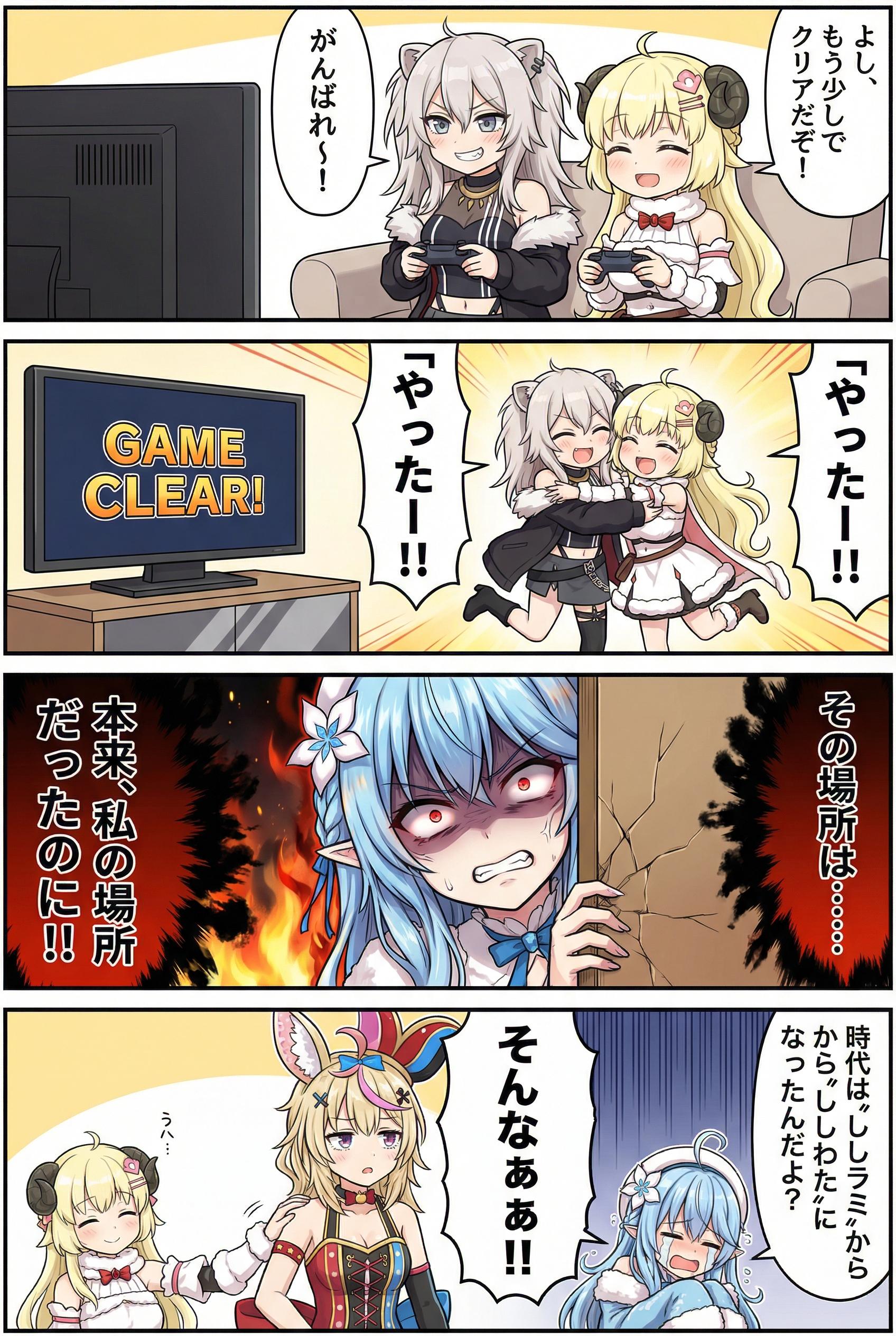 1枚目、完成品。縦長4コマだと右上から読む流れだけど