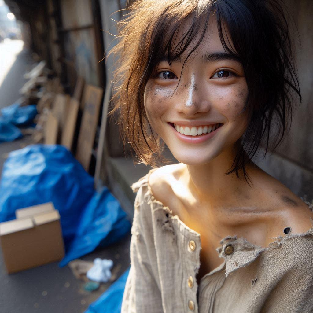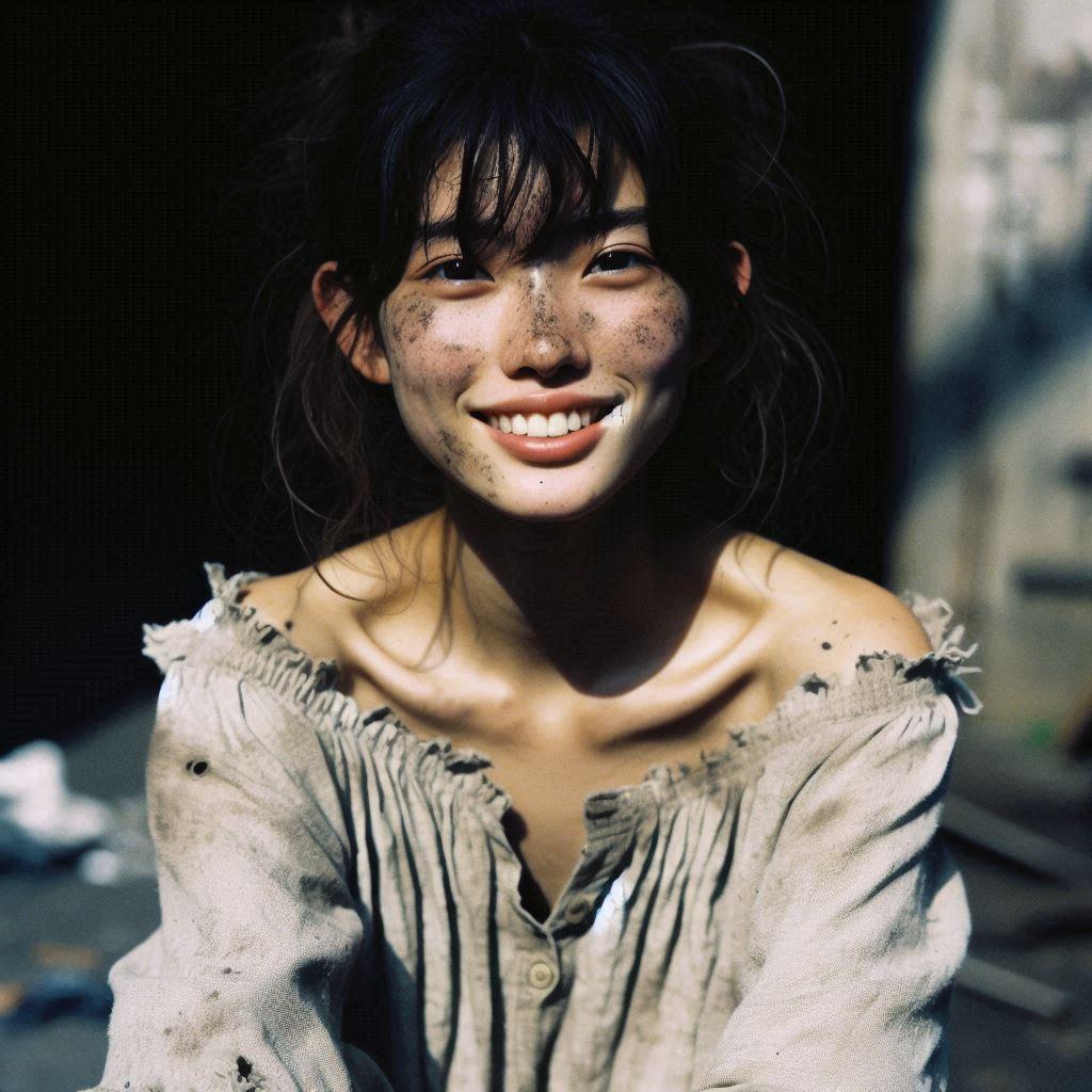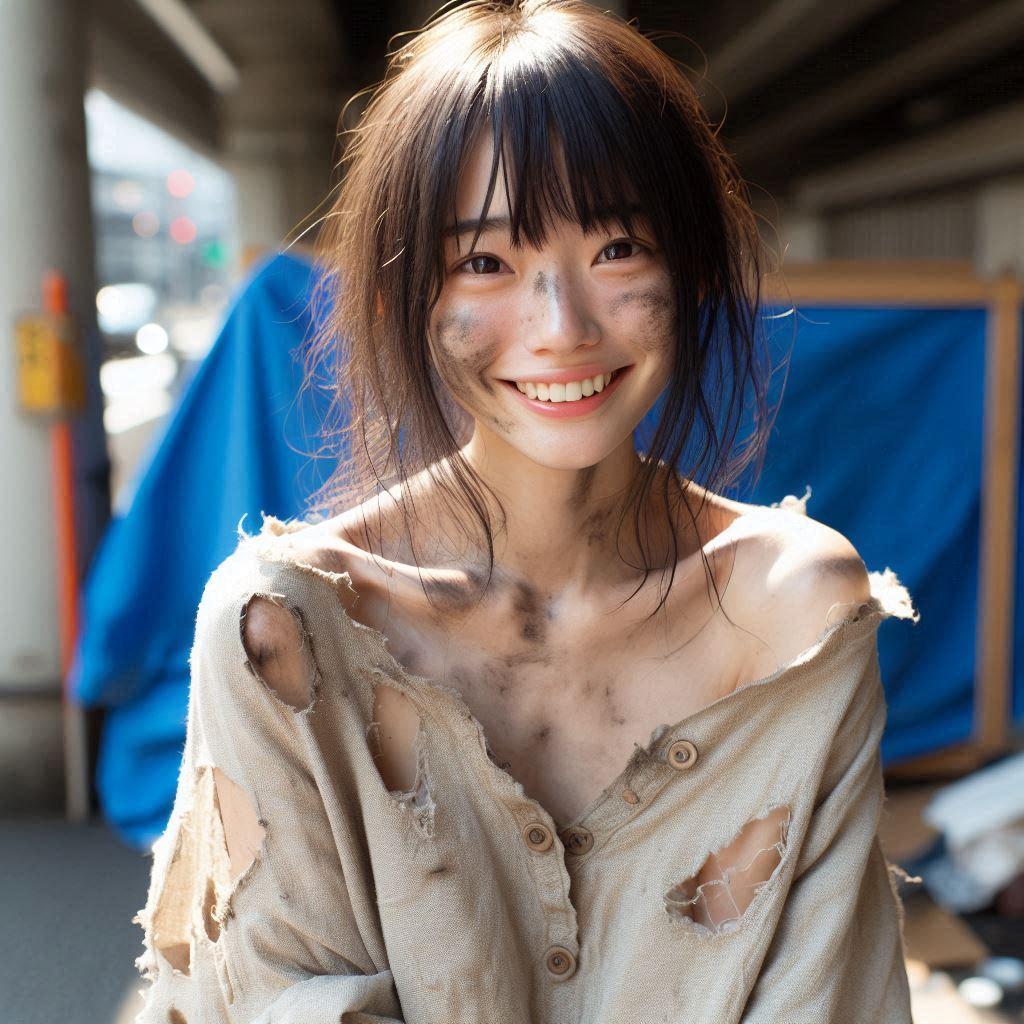 彼女が着ているのはボロ過ぎてオフショルダーに見える「服だった物」です。