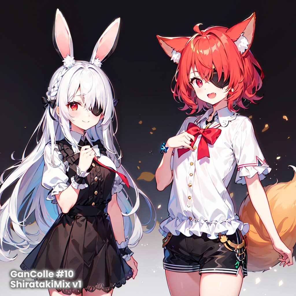 過ぎ去りし流れ星さんの企画に参加なのです。うちの子代表の狐娘カエデ(右)と兎娘エリアーヌ(左)に、特に脈絡なく眼帯ファッションをしてもらいました。