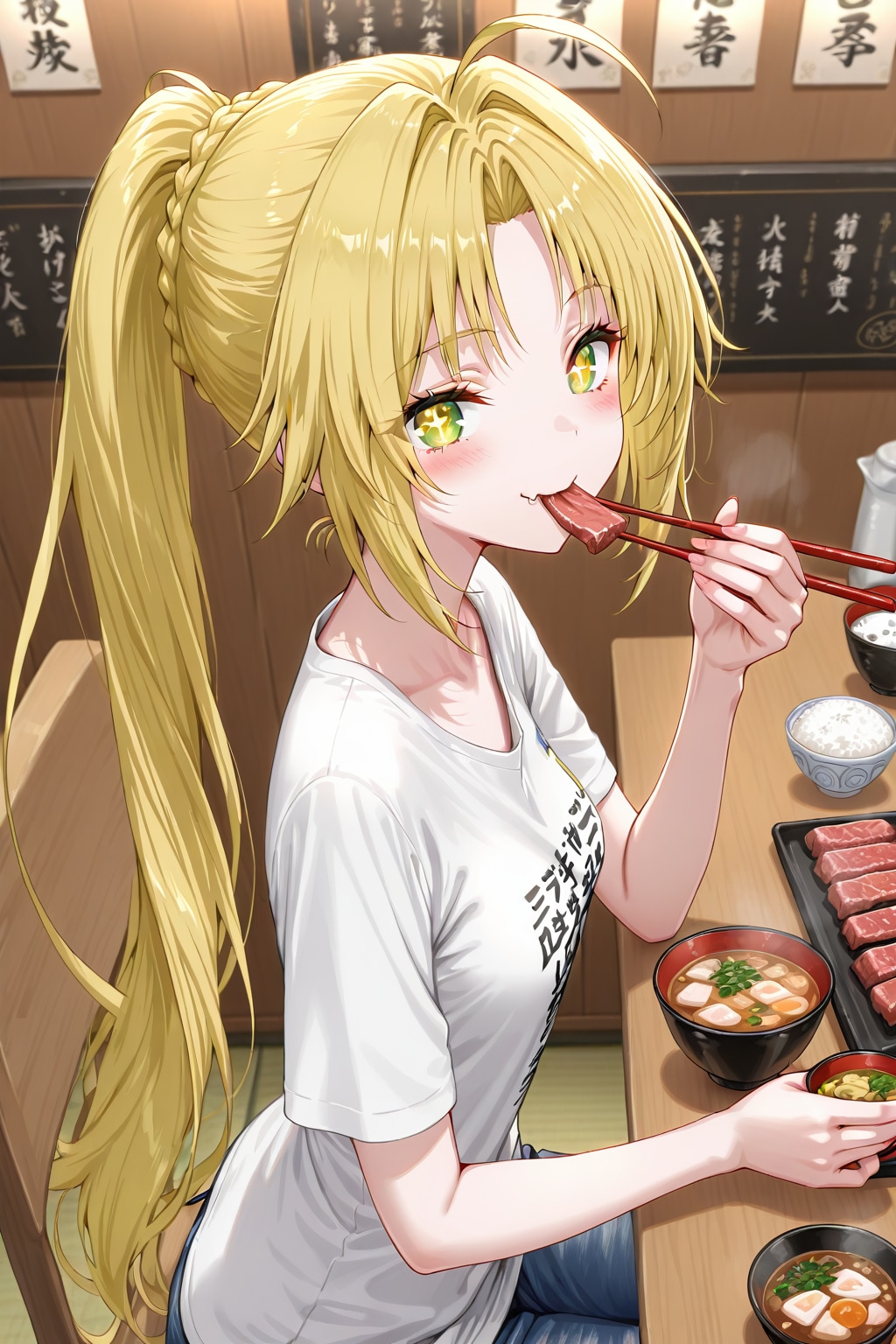 牛タンを食べ目を輝かせるフィオナちゃん♪