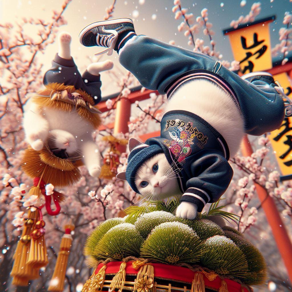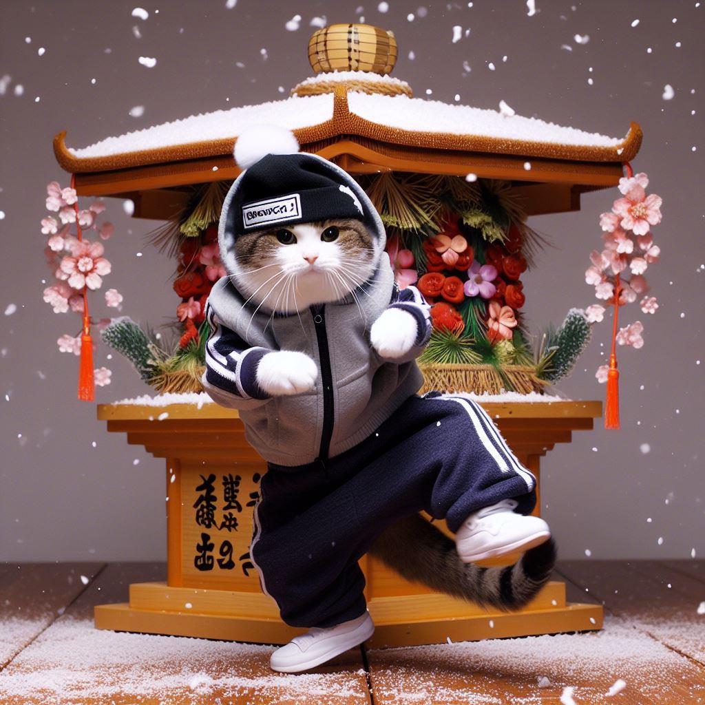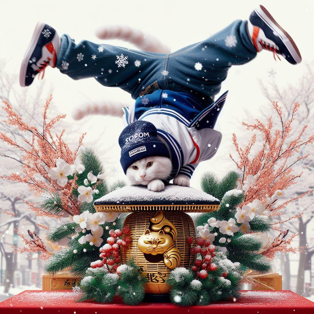 1/2追記:「新年を祝う猫」が2024年1月1日のAIフォトデイリーランキング11位に入りました!