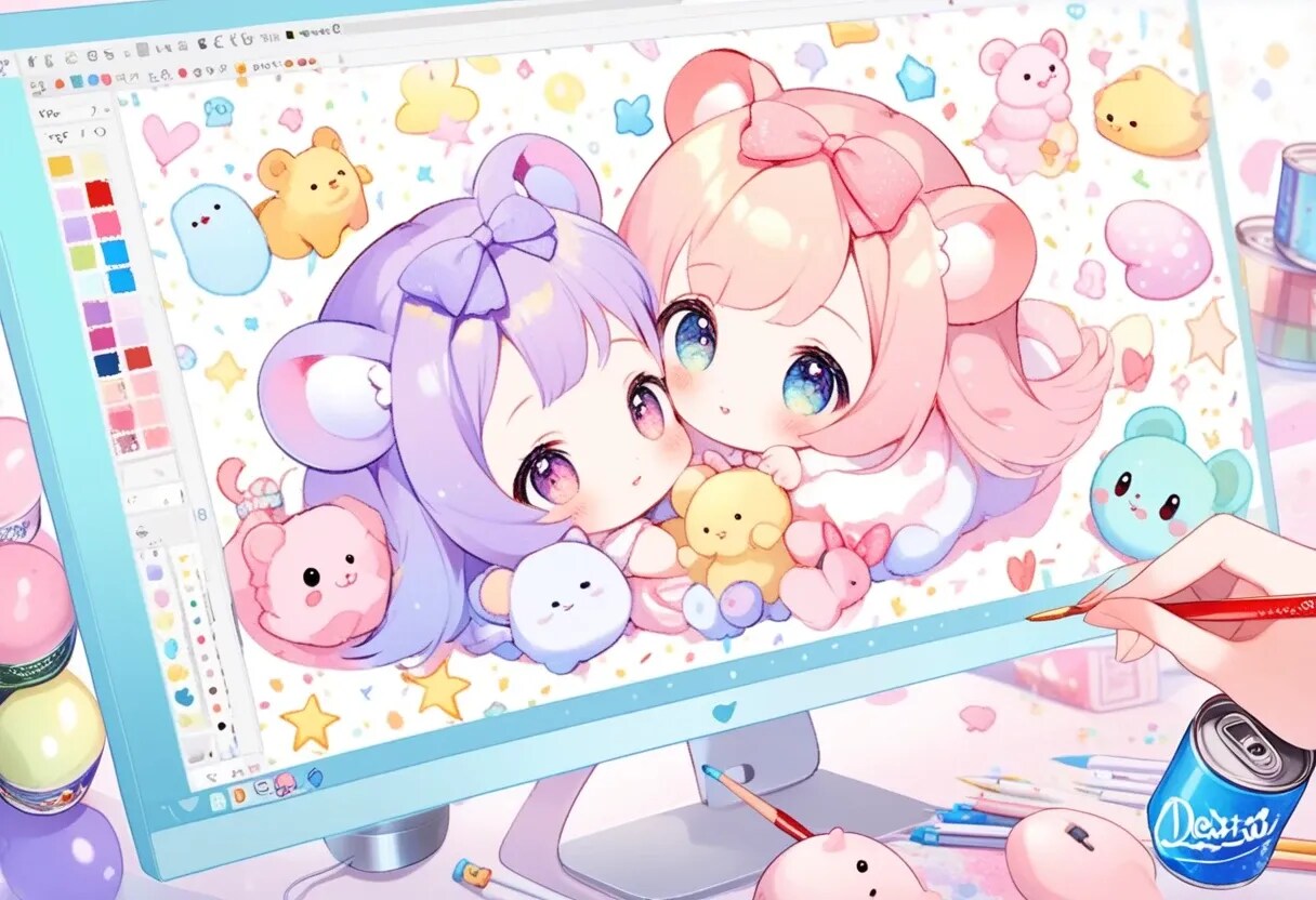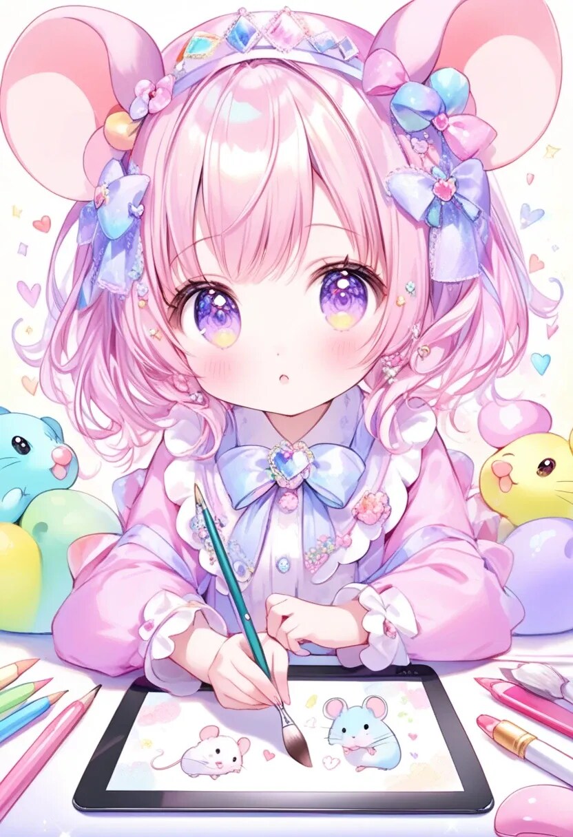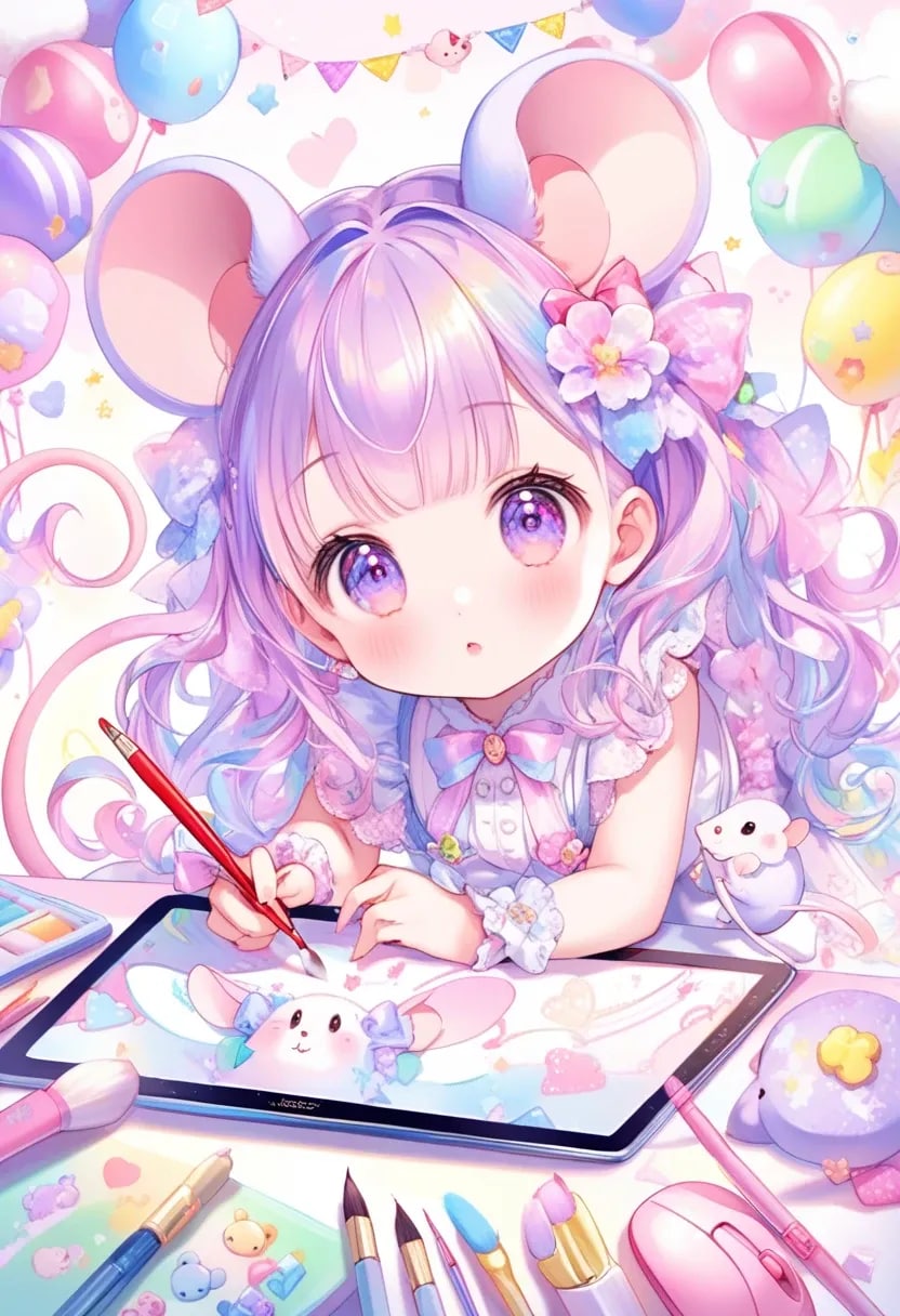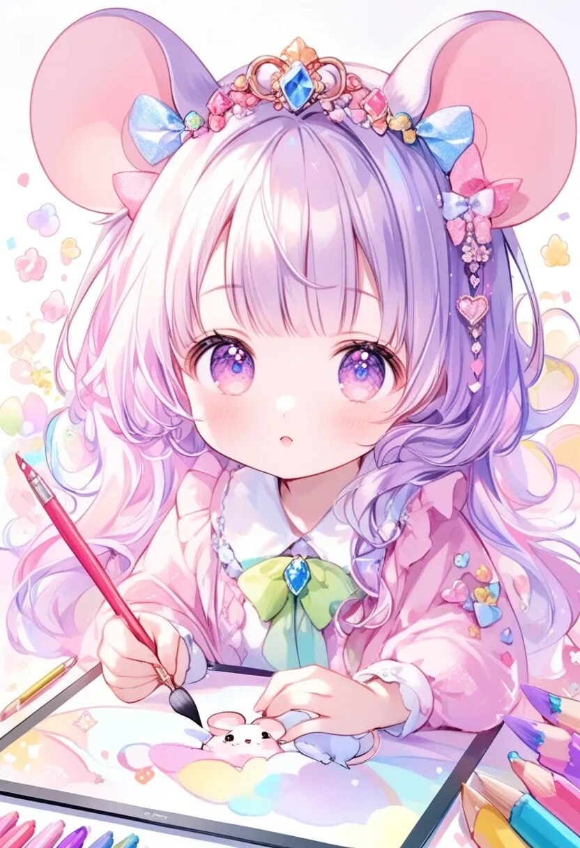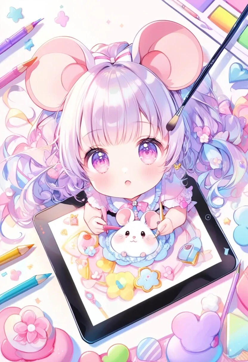 Picture on computer using mouse or tablet. Choose pencil or brush and draw something beautiful and pretty. Recently, AI can also do it.