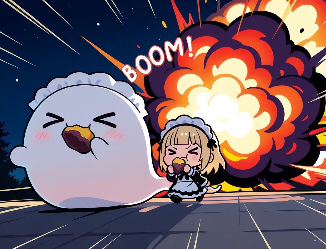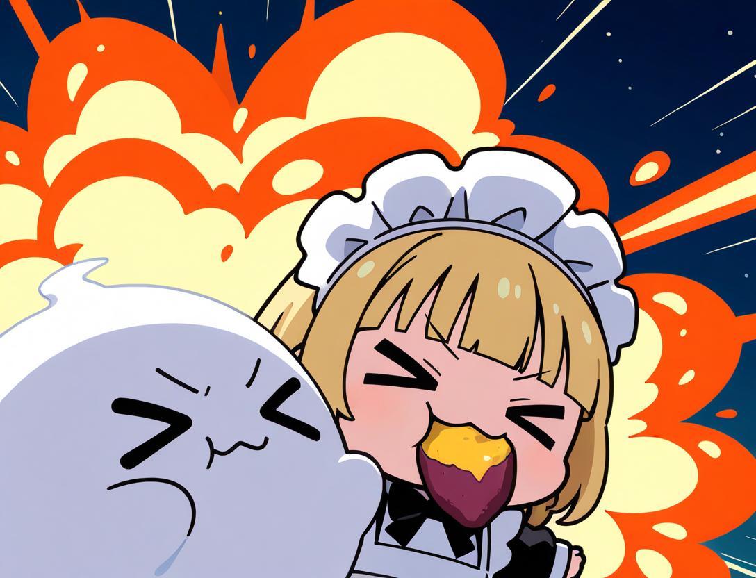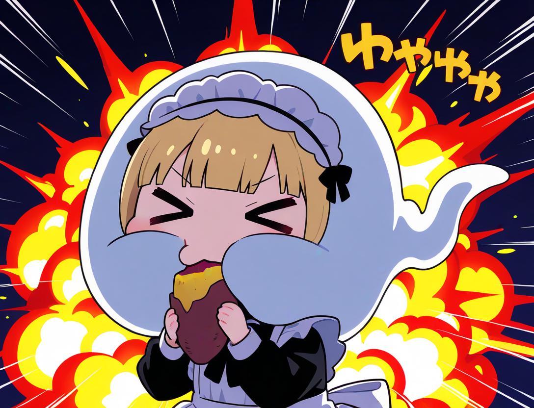 焼き芋もぐもぐマッタリお散歩メイドちゃん&お化けさん🍠✨