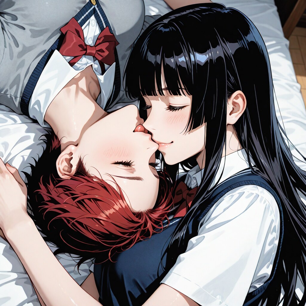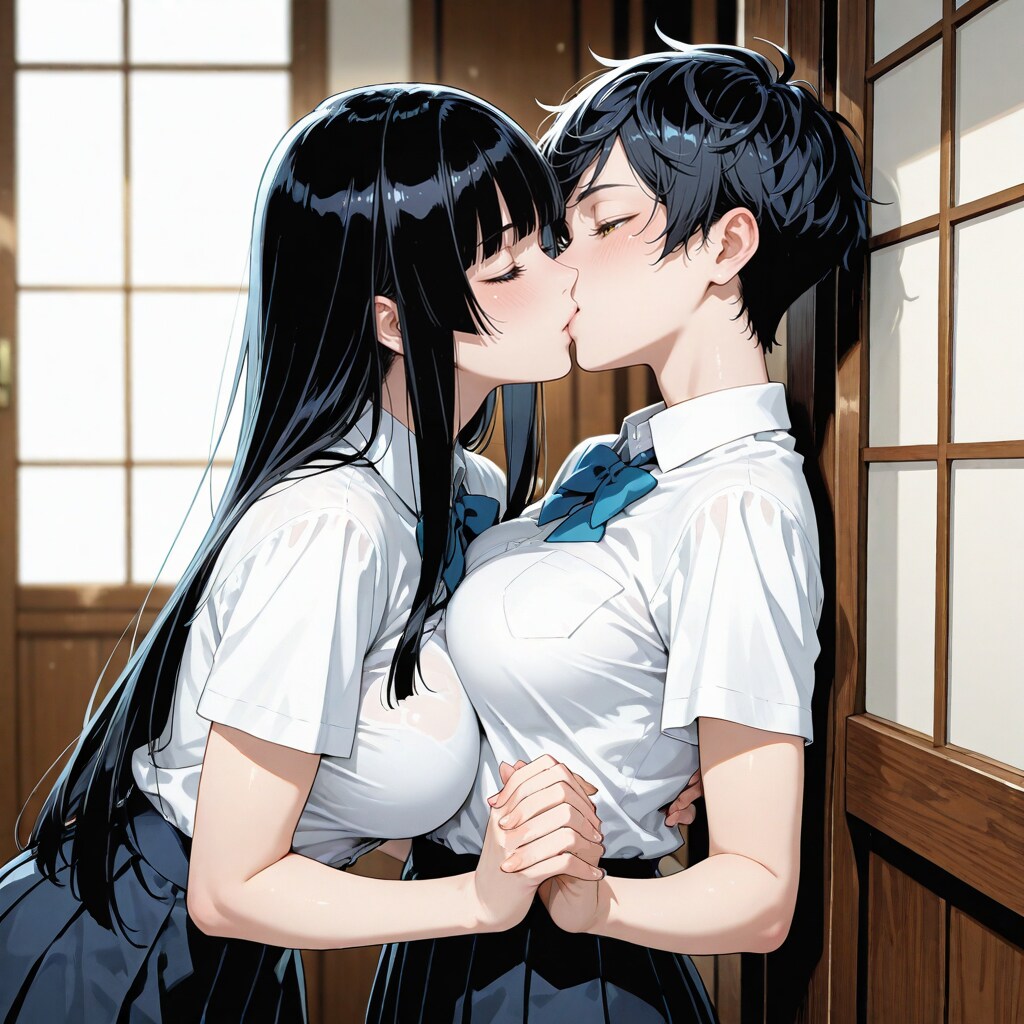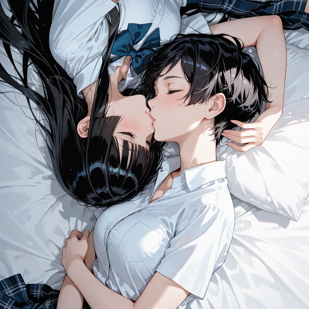 kiss,rotational symmetry, で、1枚~3枚目みたいな絵が出ました😊(要ガチャ、モデルによるかも?)