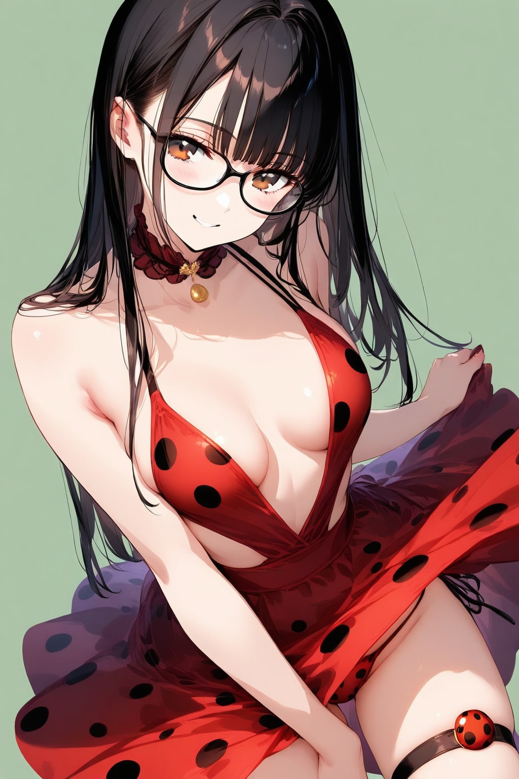Ladybug pattern plunging swim skirt:1.3,(てんとう虫・プランジング・スイムスカート)