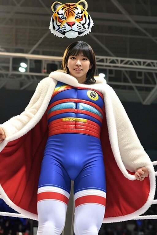 私の好きなタイガーマスク風にしようと思って、コーナポストの上に立つ勇姿の生成に挑戦しました。