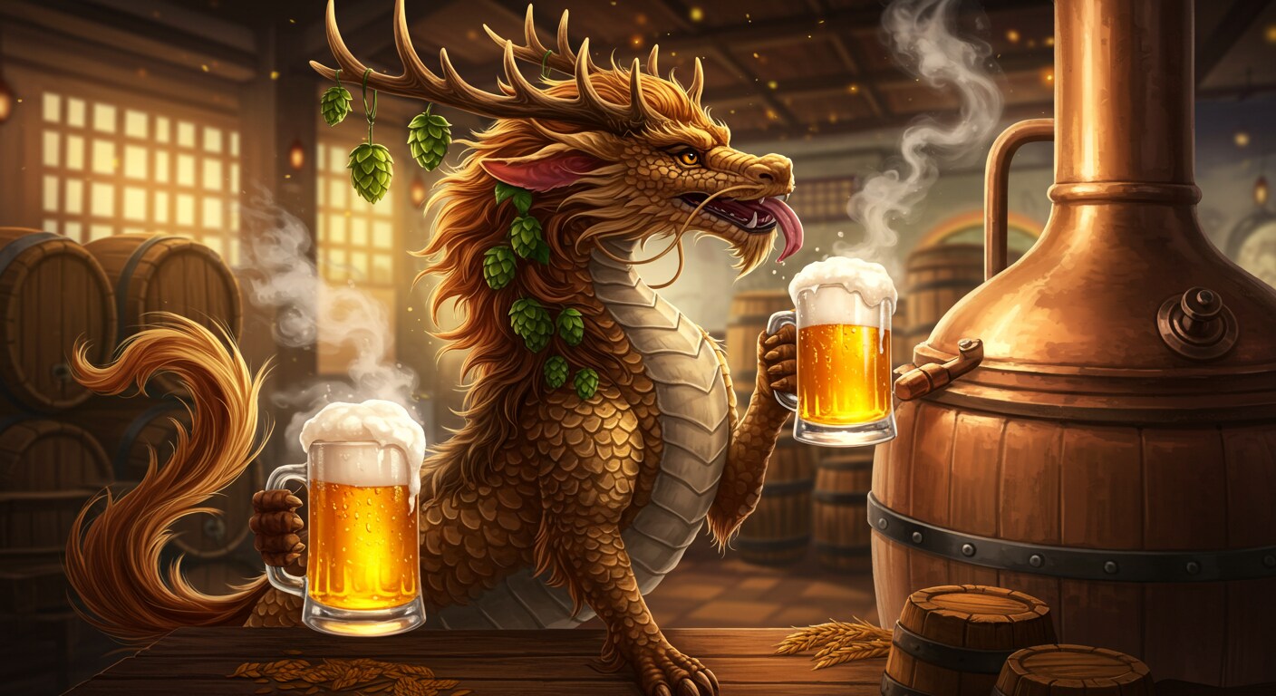 ビール麒麟は、古代から伝わる幻獣の一種で、特にビール醸造を司る存在として知られる。その姿は、黄金色に輝く鱗と鹿のような角を持ち、角にはホップが自然に生えるという特徴を持つ。彼らは非常に知的で、独自の方法でビールを醸造する能力を持っている。