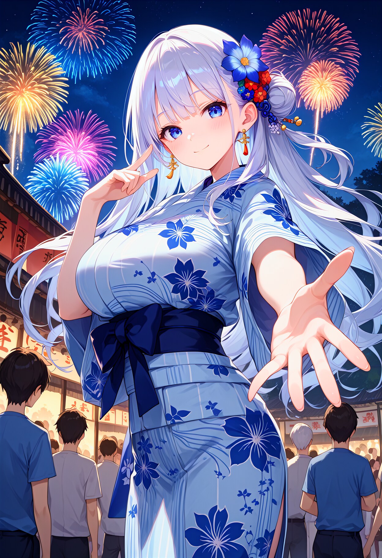 こっちこっち、ほらもう花火上がってるよ早く行こう