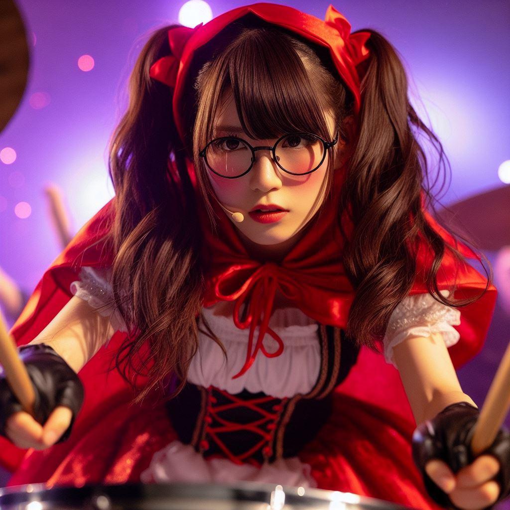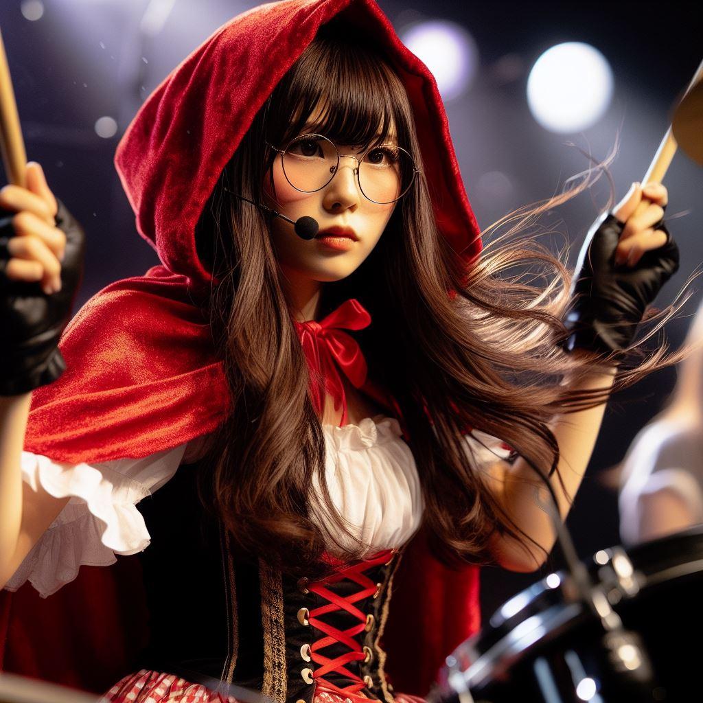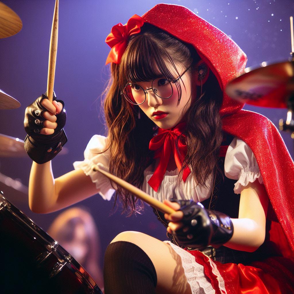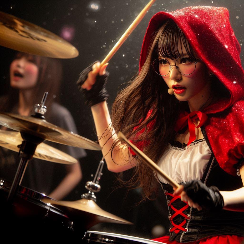 ドラムスティックを握ると真剣モードに切り替わる赤ずきんちゃん