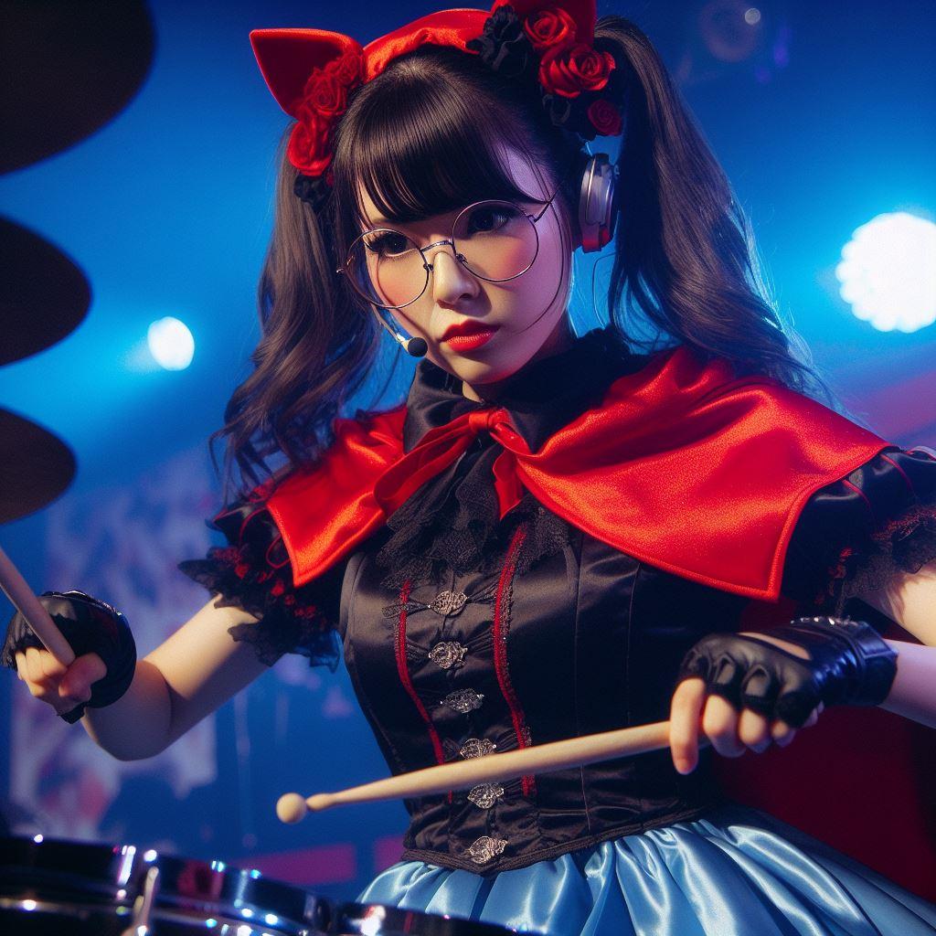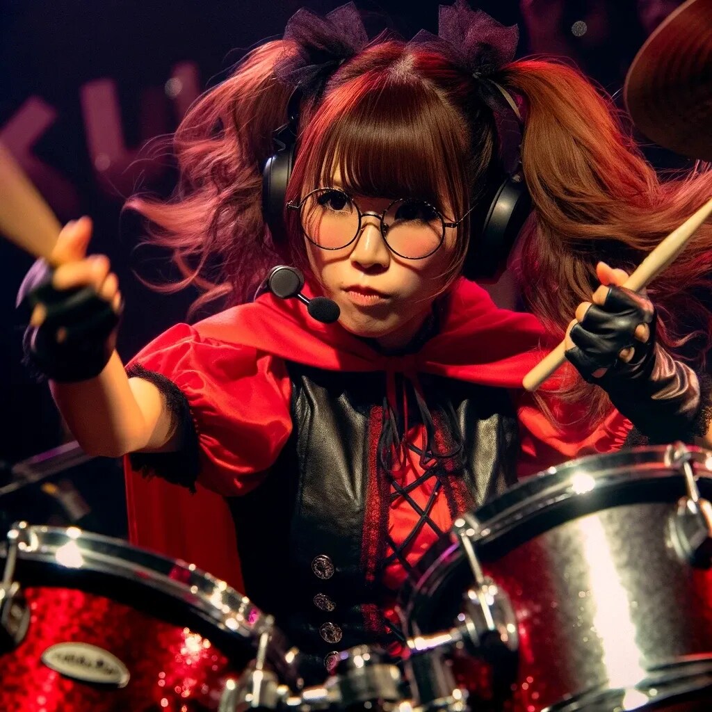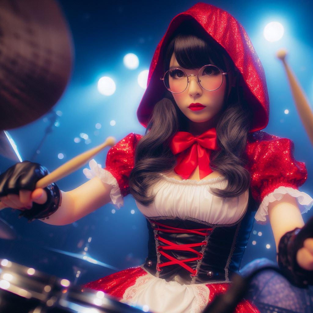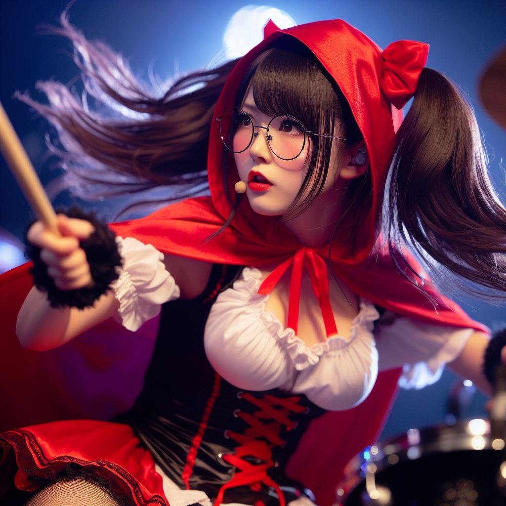 ドラムスティックを握ると真剣モードに切り替わる赤ずきんちゃん