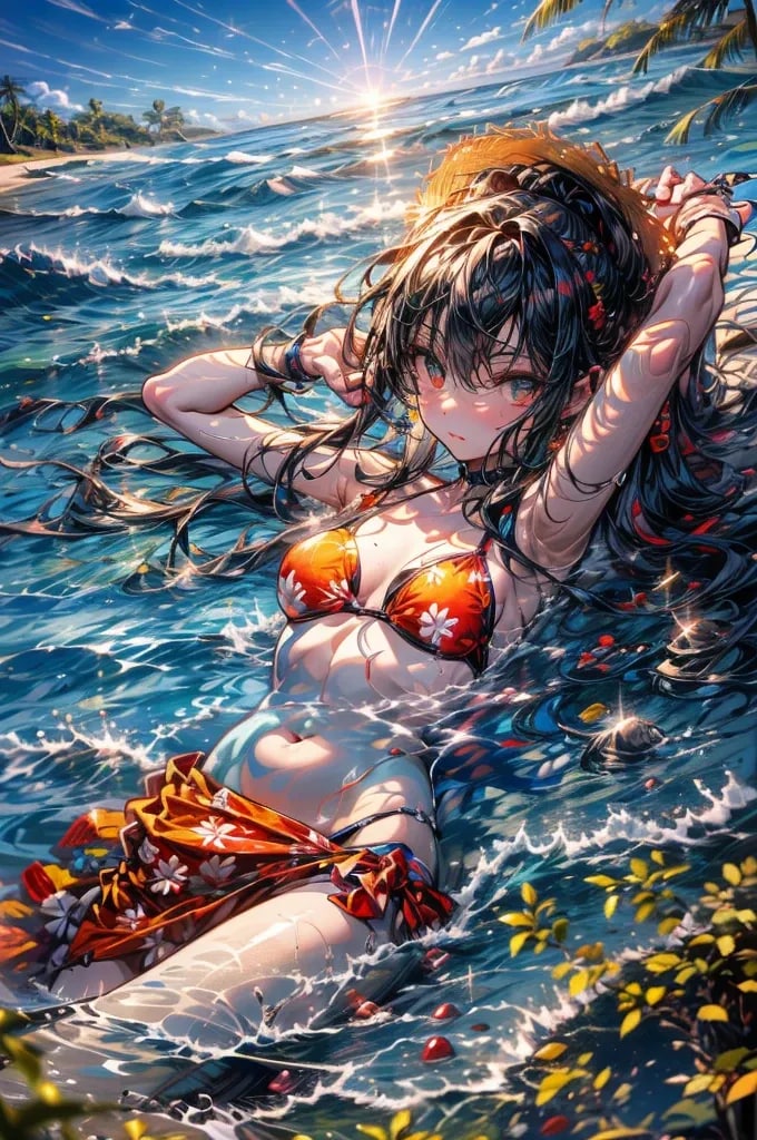 泳ぐために眼鏡外してスーツ脱いでポニテを解くと
