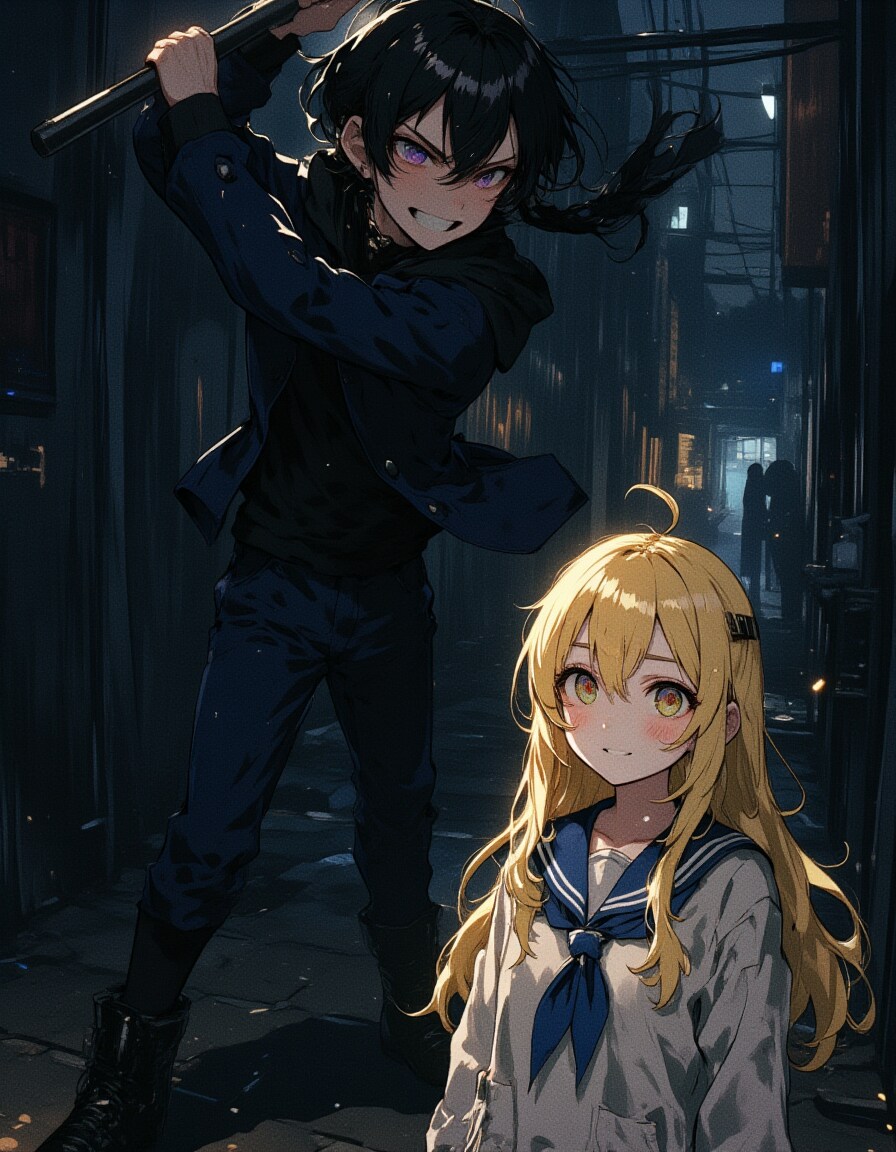 一撃。落ちていた鉄パイプで彼の側頭部に一撃を加え、一瞬で意識を刈り取る。