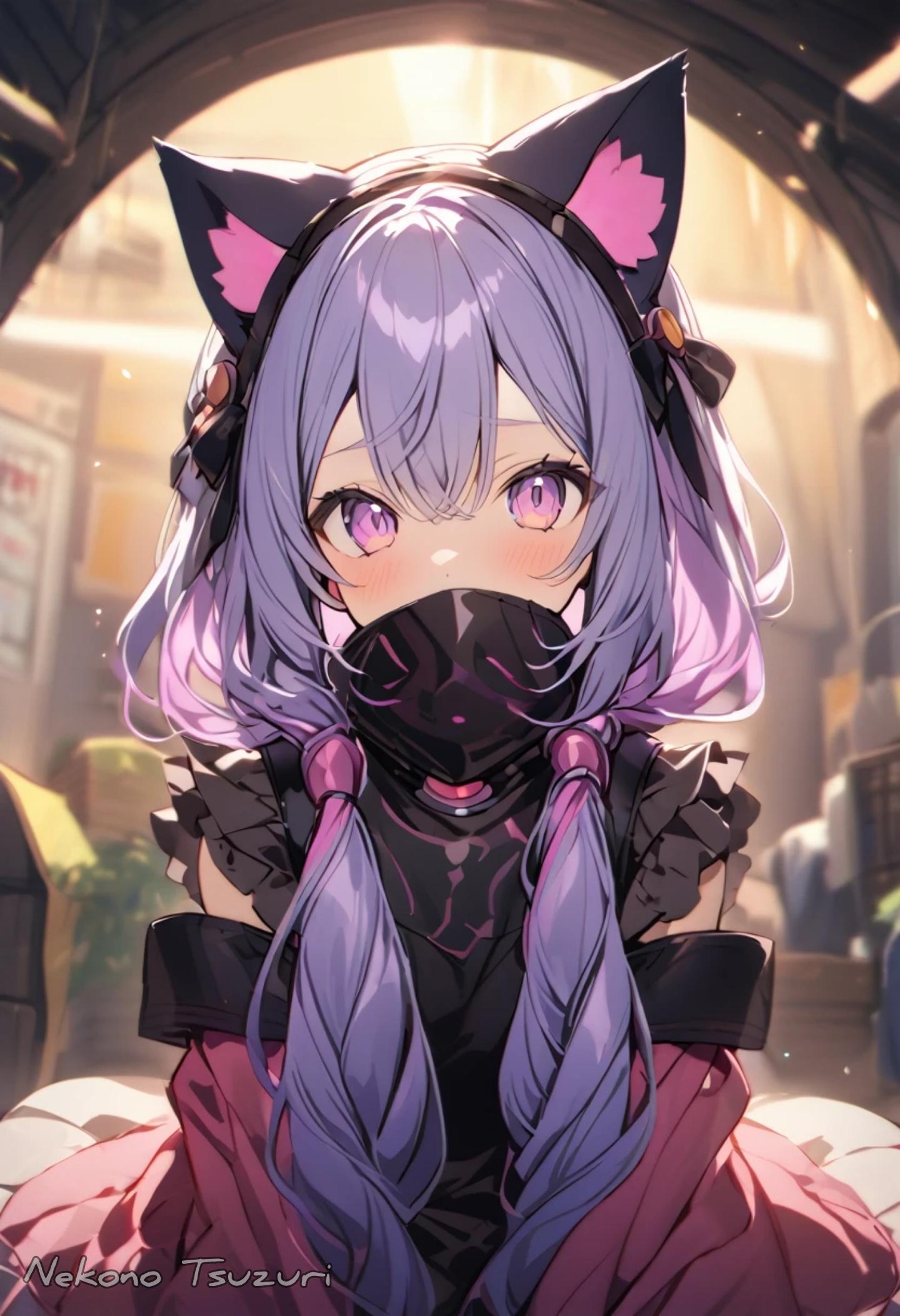 蓋をするためにガスマスクを付けた猫耳