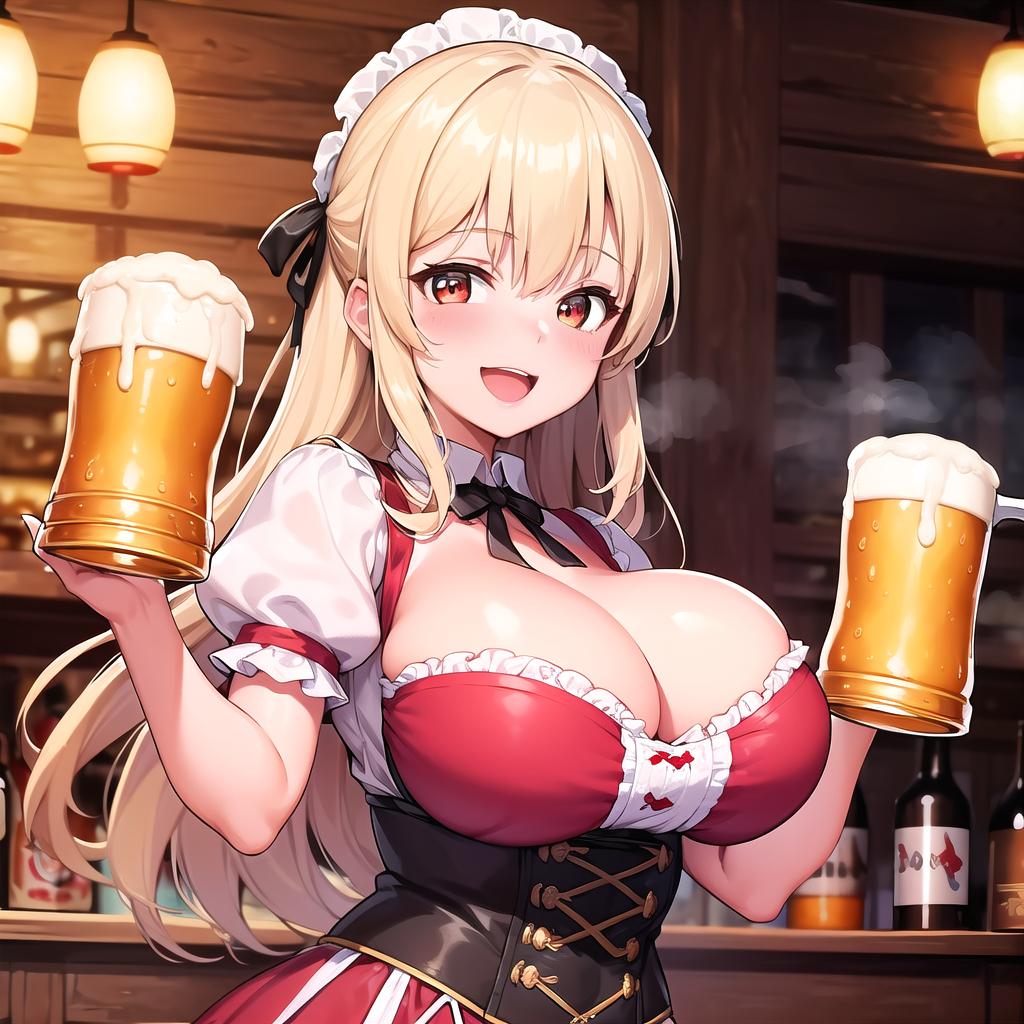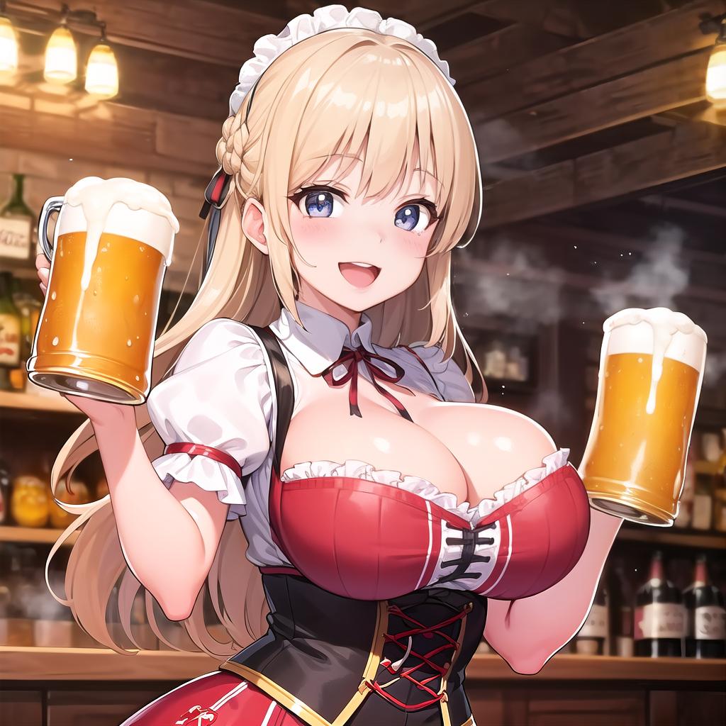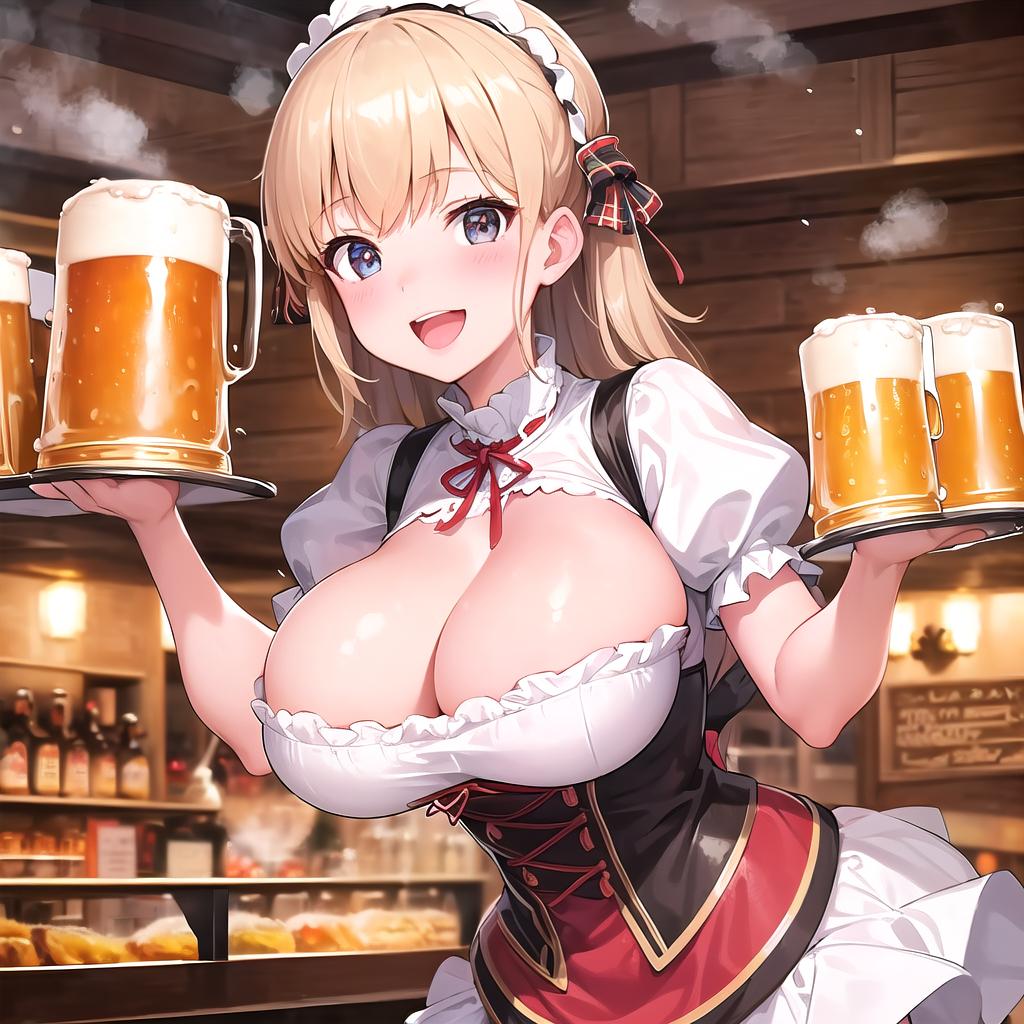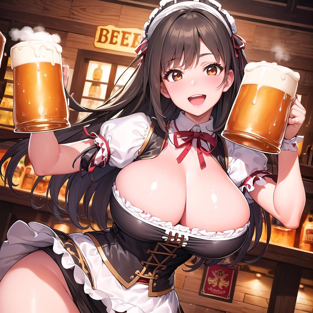 「ビールお待たせしました~♡ 搾りたての生ですよ~♡」