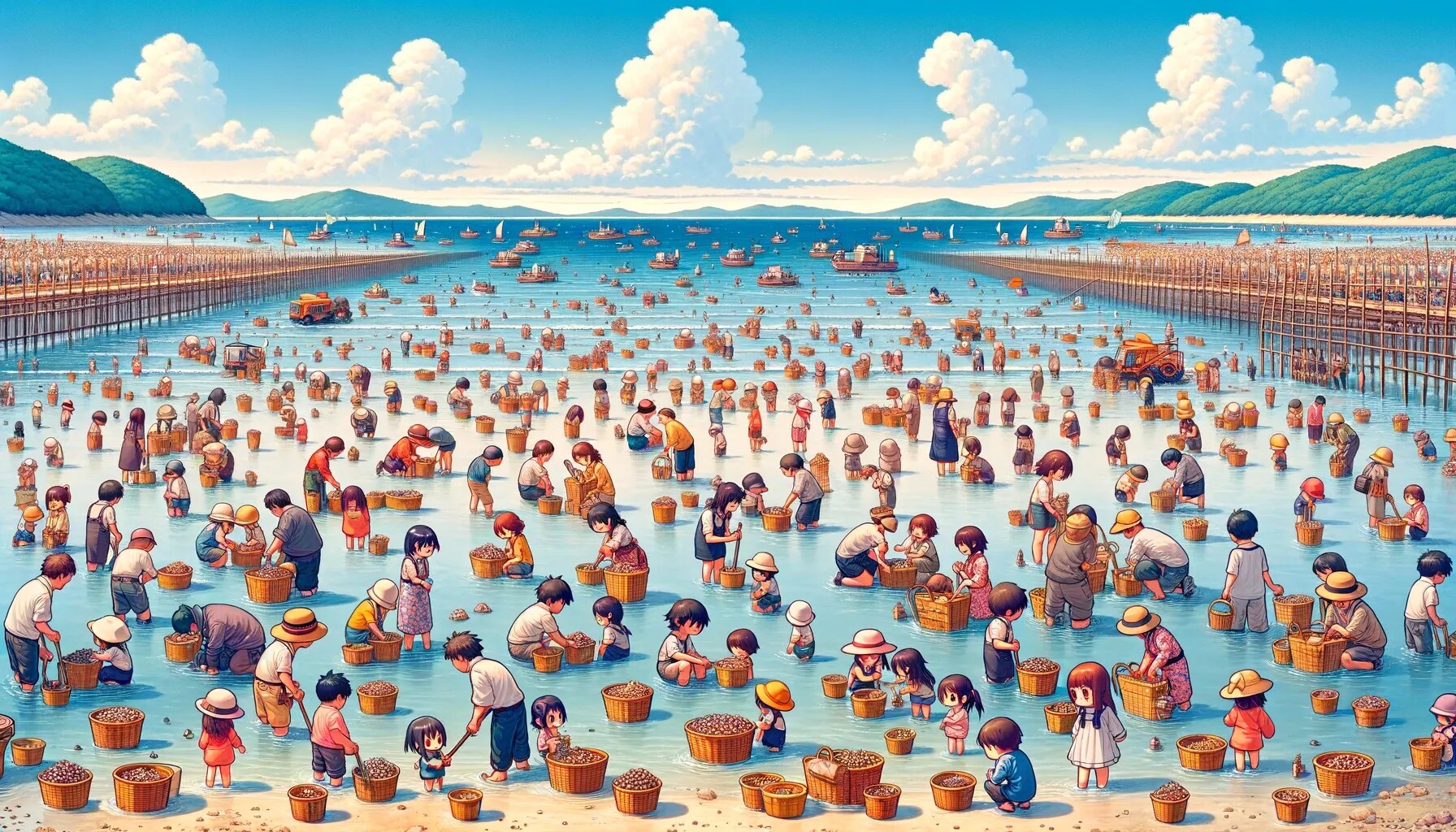 干潟で貝を採るというのは海外でも行われていると思いますが、それを行楽として季節の行事のように楽しむのは日本だけじゃないかなあ?