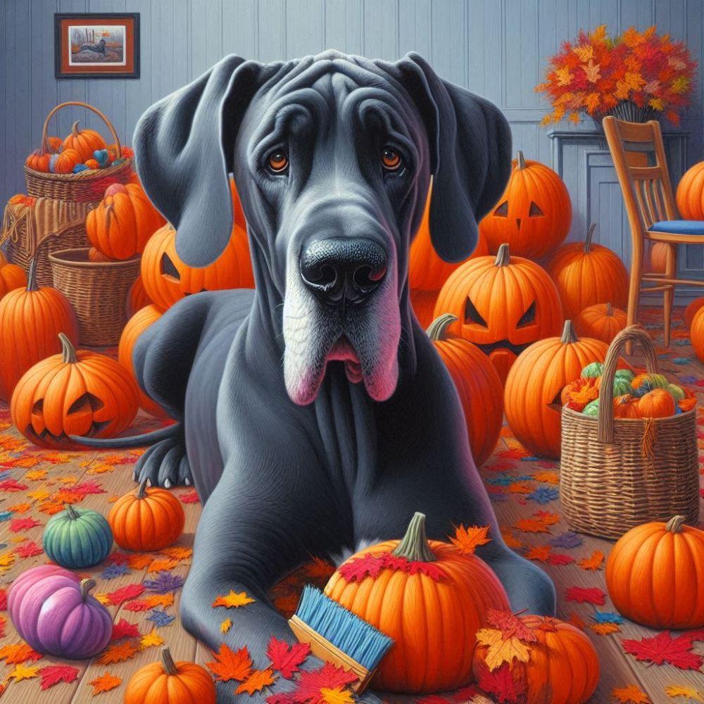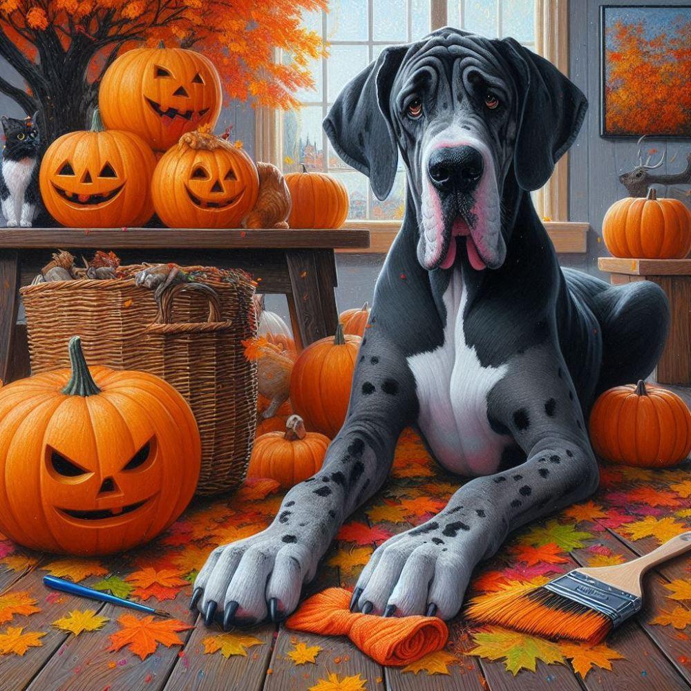 アクリル、世界一大きい犬グレート・デーン、秋、ハロウィン終了後の片づけ