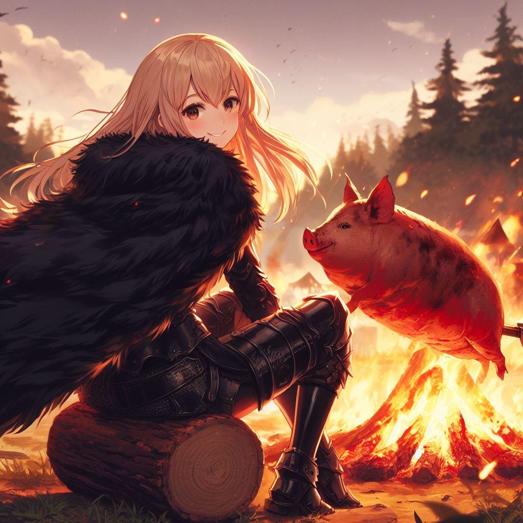 焚火で丸焼き。焼けるのが楽しみで仕方ないご様子。