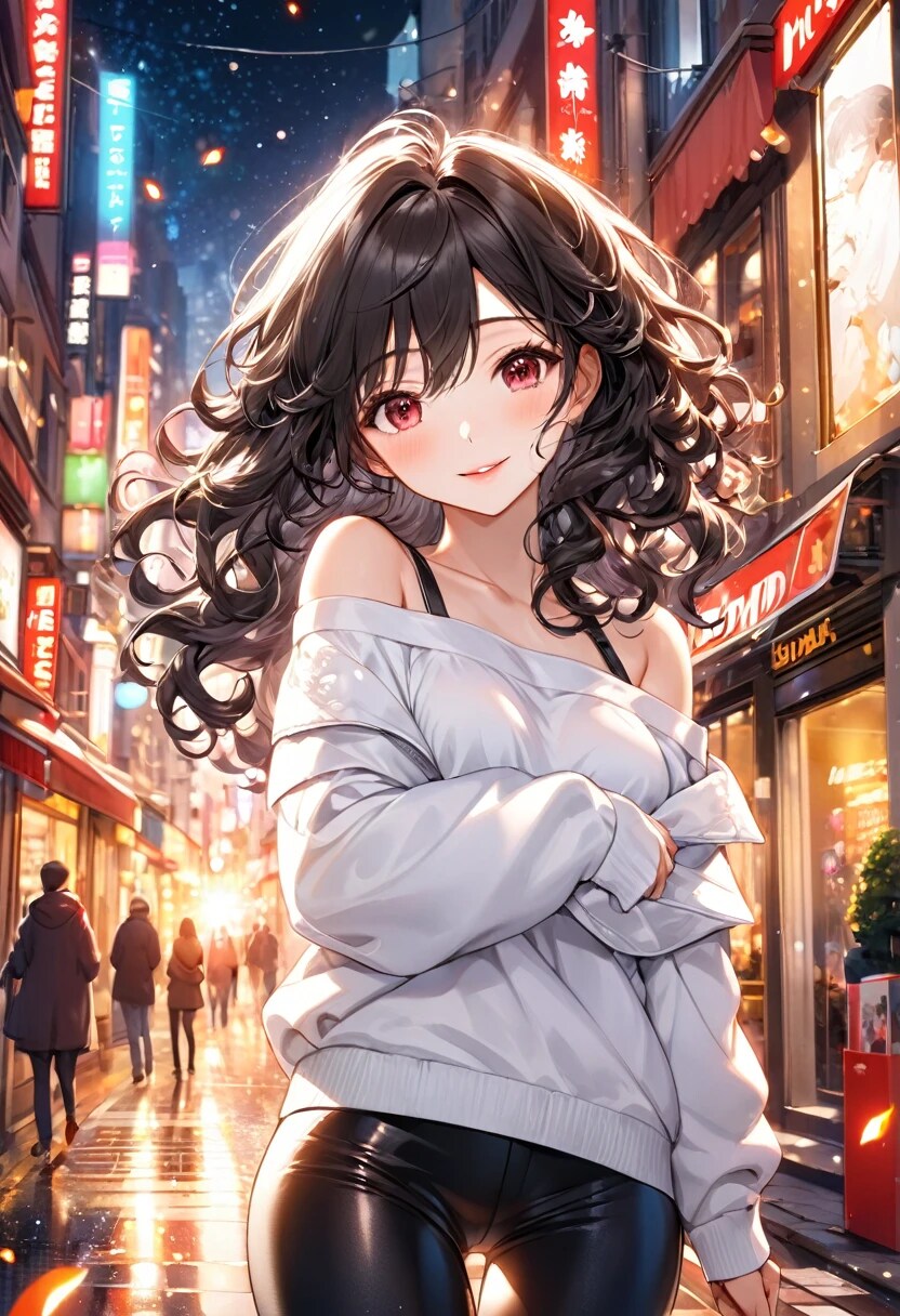 ③白基調オフショルトレーナーとパンツルック