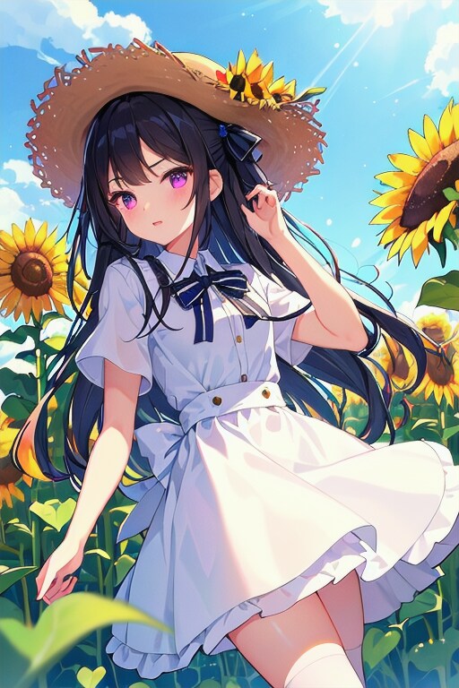 ひまわりお題でも、うちの子・スズカで投稿しましたが、その時は夕焼けのイラストを投稿したかったため、泣く泣く見送った、うちの子と青空のイラスト達です!!(1,2枚目は髪短めですが、似ているのでうちの子判定!)