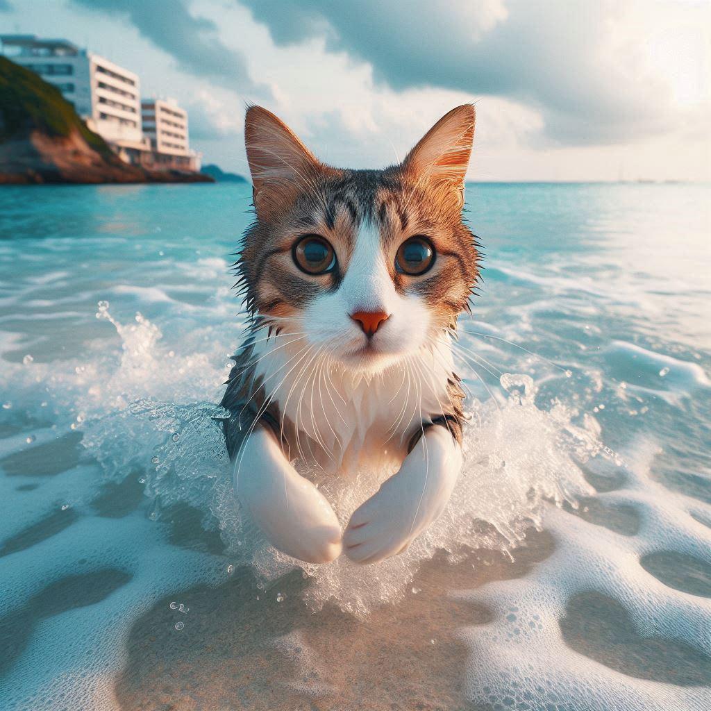 海を走り回っても踊れば乾くのでこの場所を気に入っているらしい。