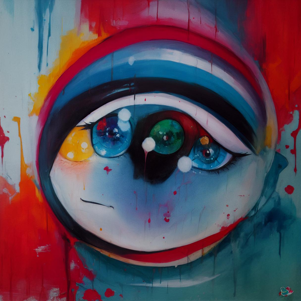 memeplexで監視 抽象画 でだしたものを、とりんアートに渡して、 ヤンデレ 抽象画のプロンプトを入れました