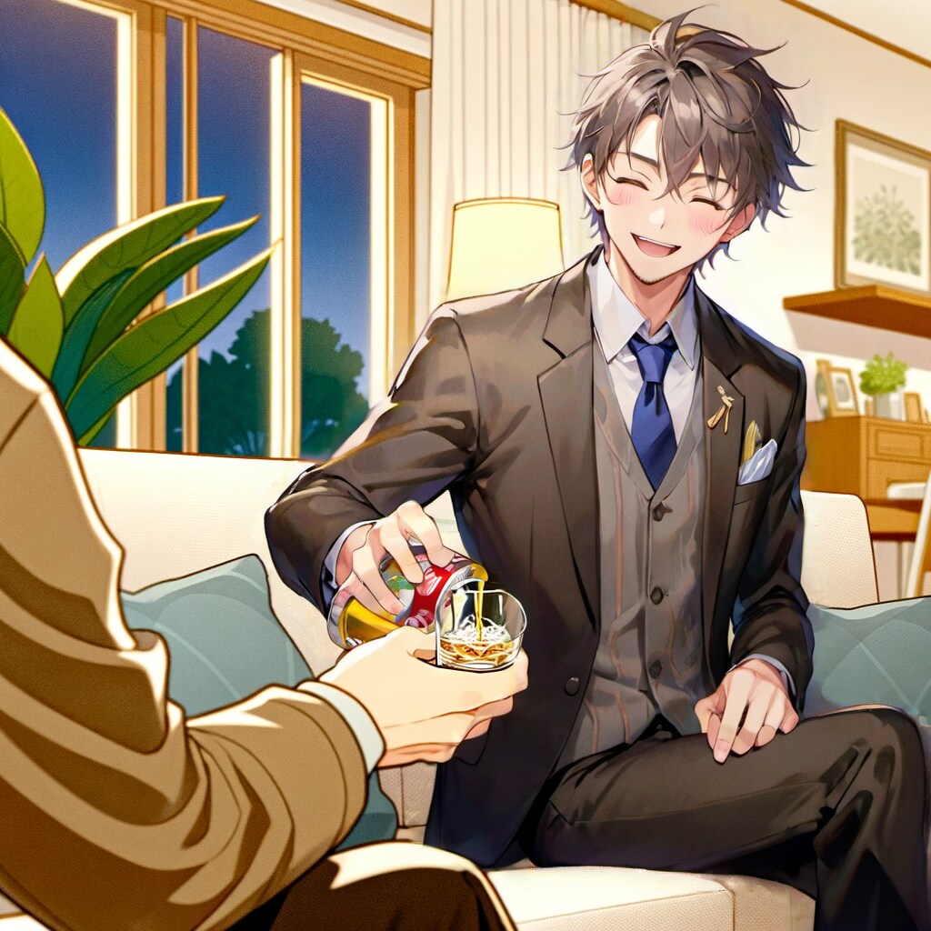 3枚目…爽やかな笑顔でグラスに何か注いじゃっているのでボツ