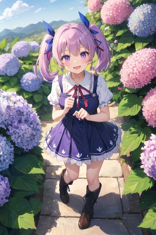 見渡す限り1面の紫陽花に感動する絵梨奈ちゃん。