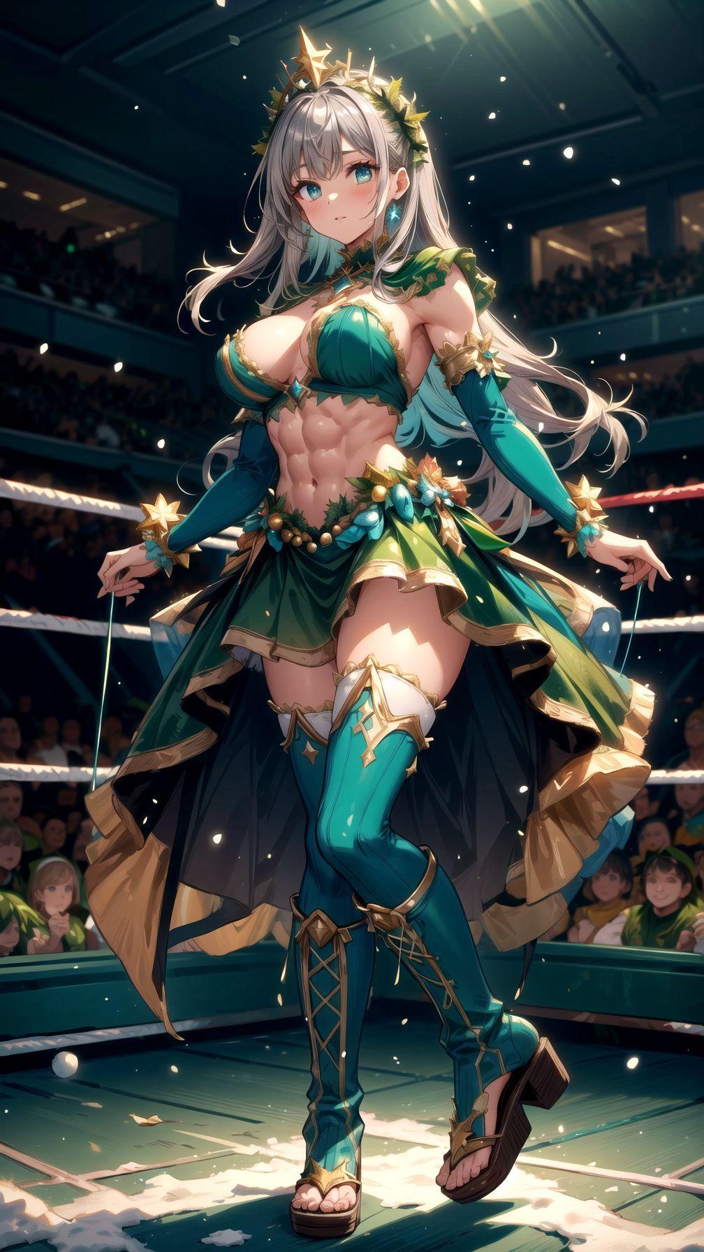 格闘四季(冬) クリスマスツリーモチーフの女子プロレスラー